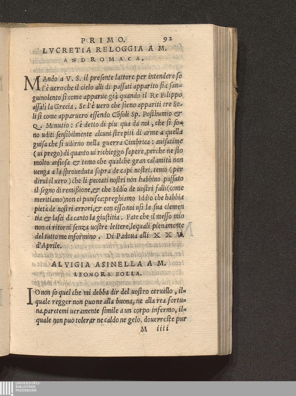Lettere Di Molte Valorose Donne, Nelle Qvali Chiaramente Appare. Non Esser Ne Di Eloqventia Ne Di Dottrina Alli Hvomini Inferiori / [Ortensio Landi]
