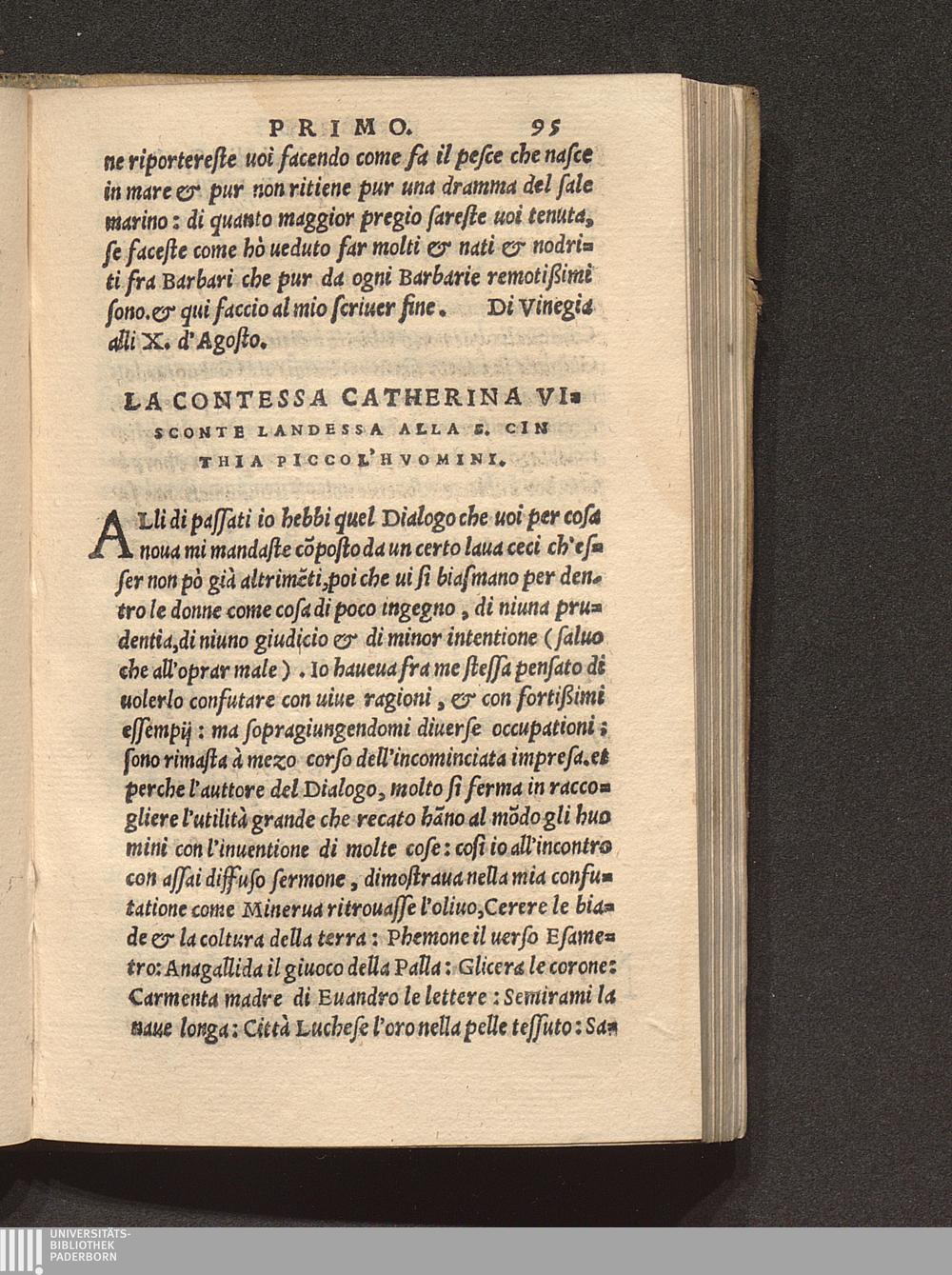 La Contessa Catherina Visconte Landessa Alla S. Cinthia Piccol'Hvomini.