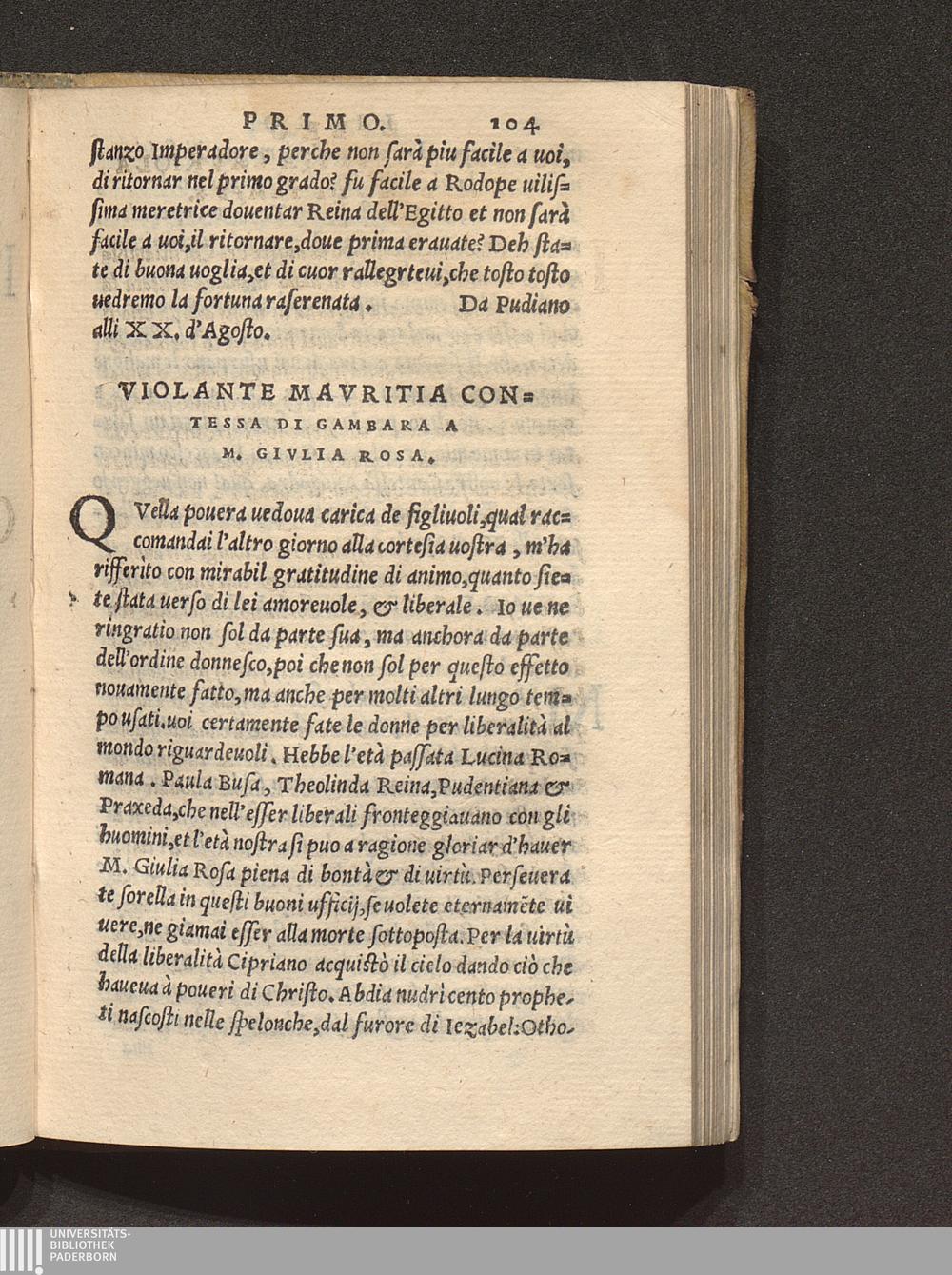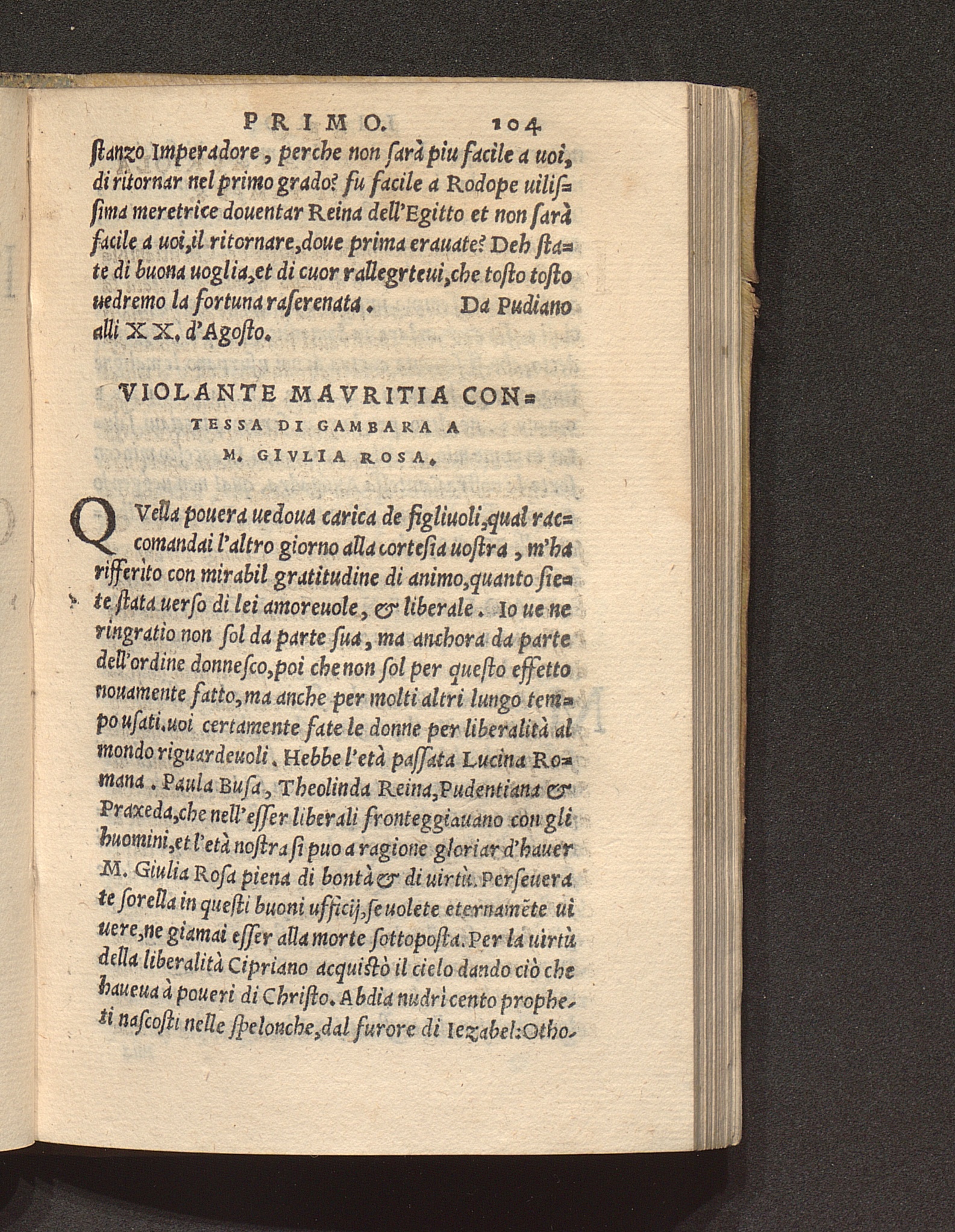 Violante Mavritia Contessa Di Gambara A M. Givlia Rosa.