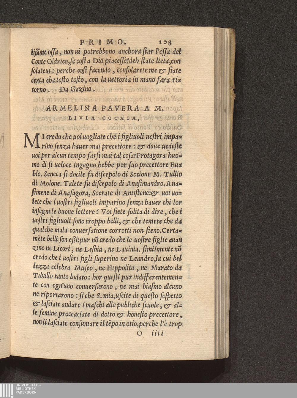 Armelina Pavera A M. Livia Cocaia.