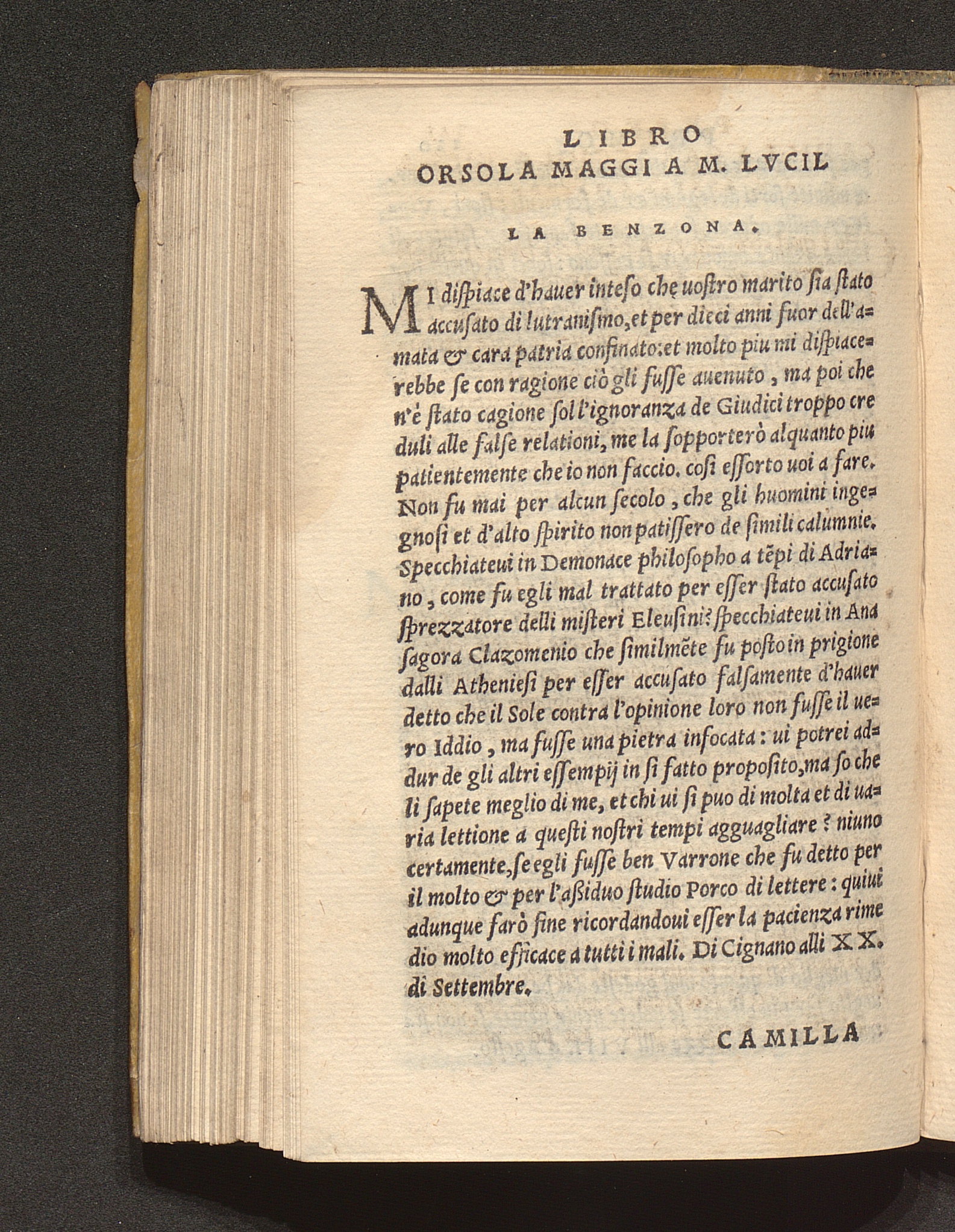 Orsola Maggi A M. Lvcilla Benzona.