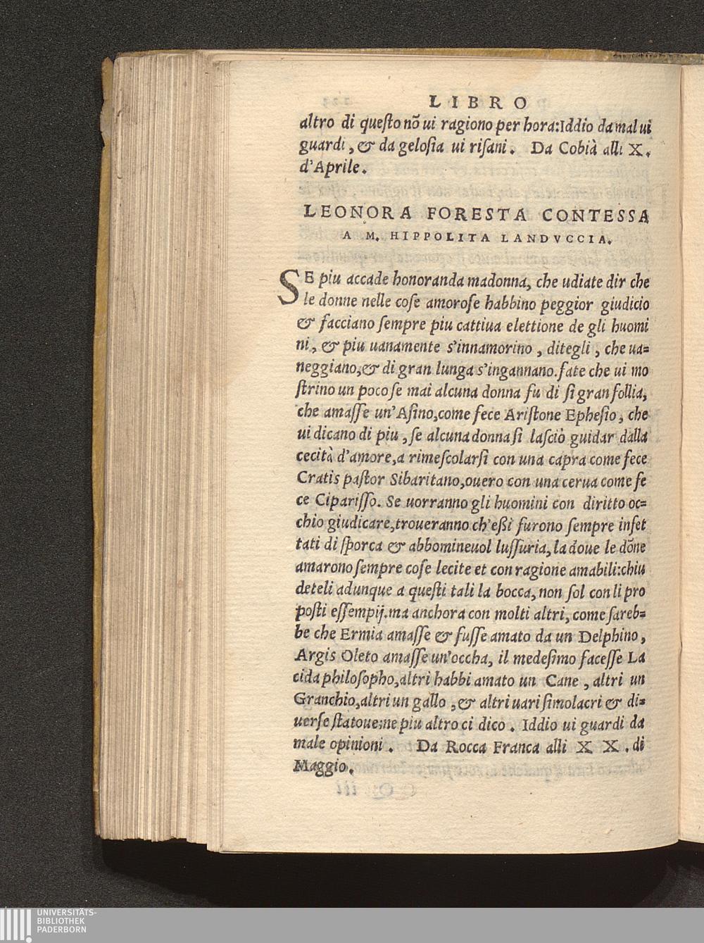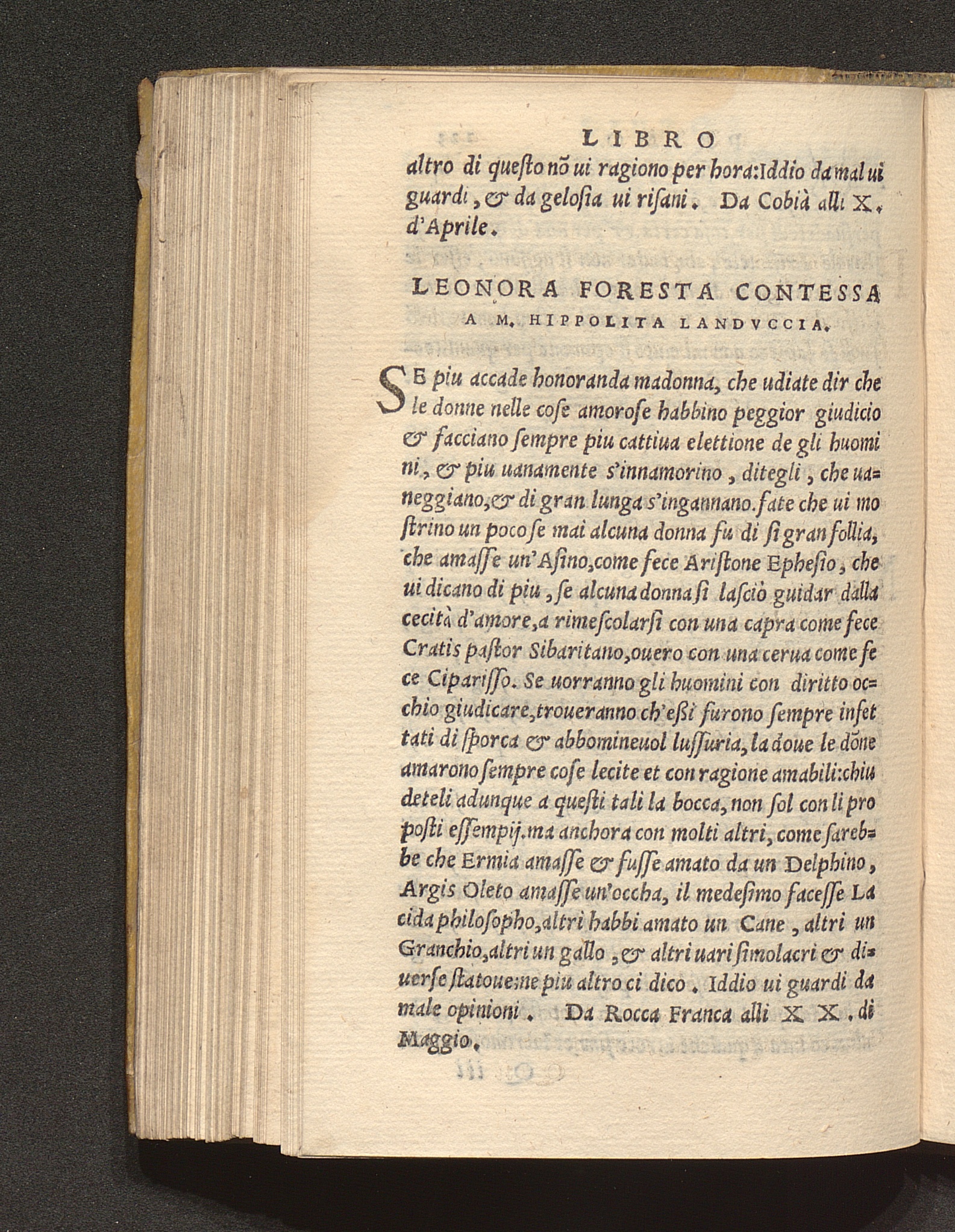 Leonora Foresta Contessa A M. Hippolita Landvccia.