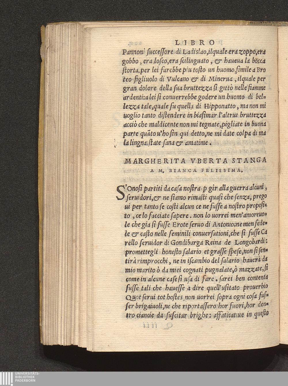 Margherita Vberta Stanga A M. Bianca Felissima.