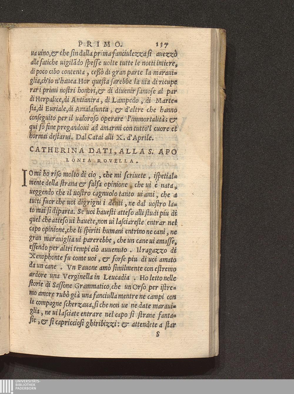 Catherina Dati, Alla S. Apolonia Rovella.