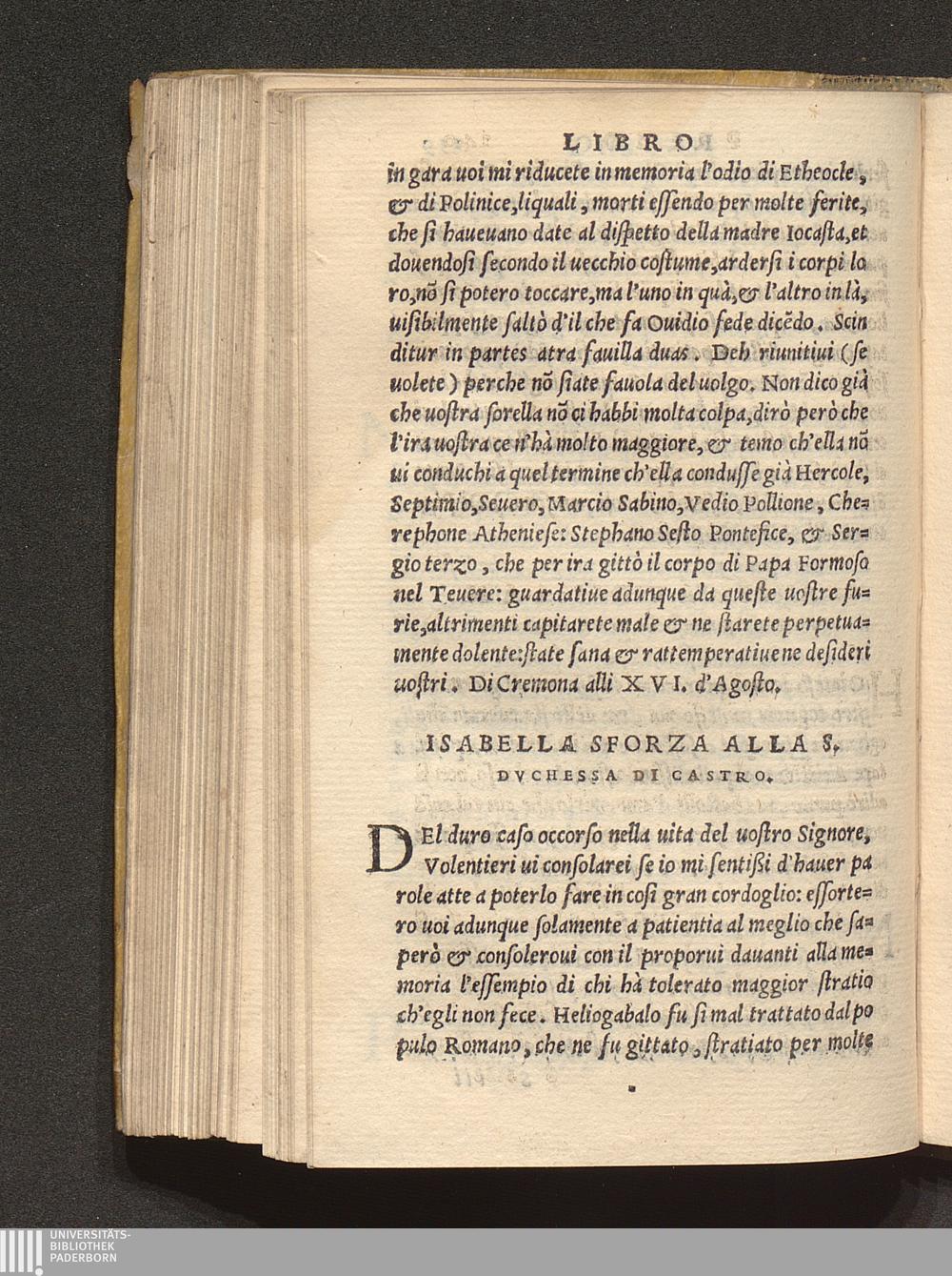Isabella Sforza Alla S. Dvchessa Di Castro.
