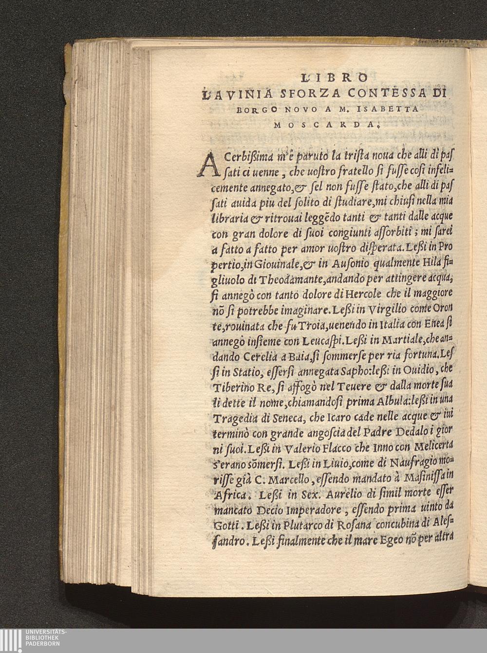 La Vinia Sforza Contessa Di Borgo Novo A M. Isabetta Moscarda.