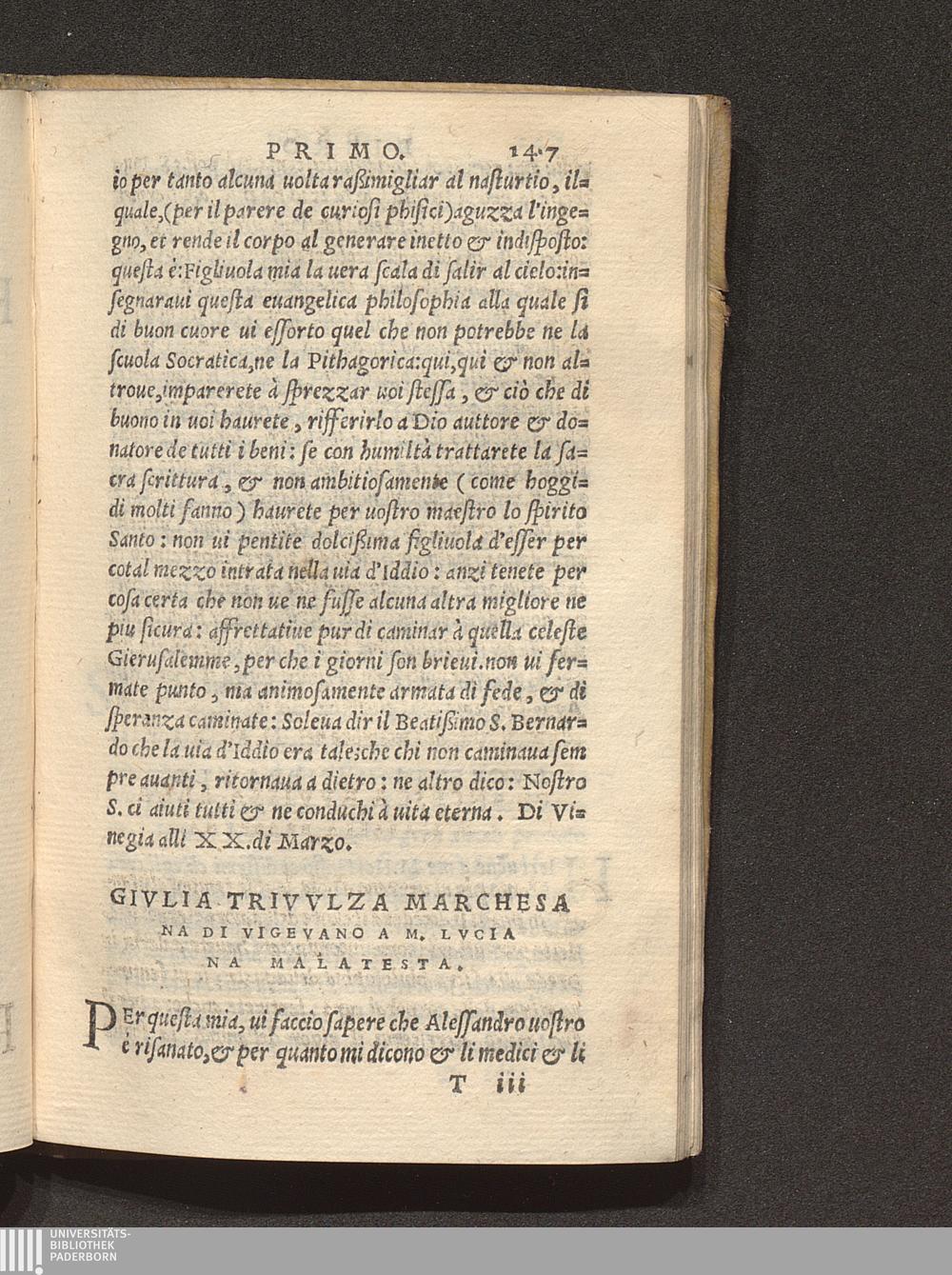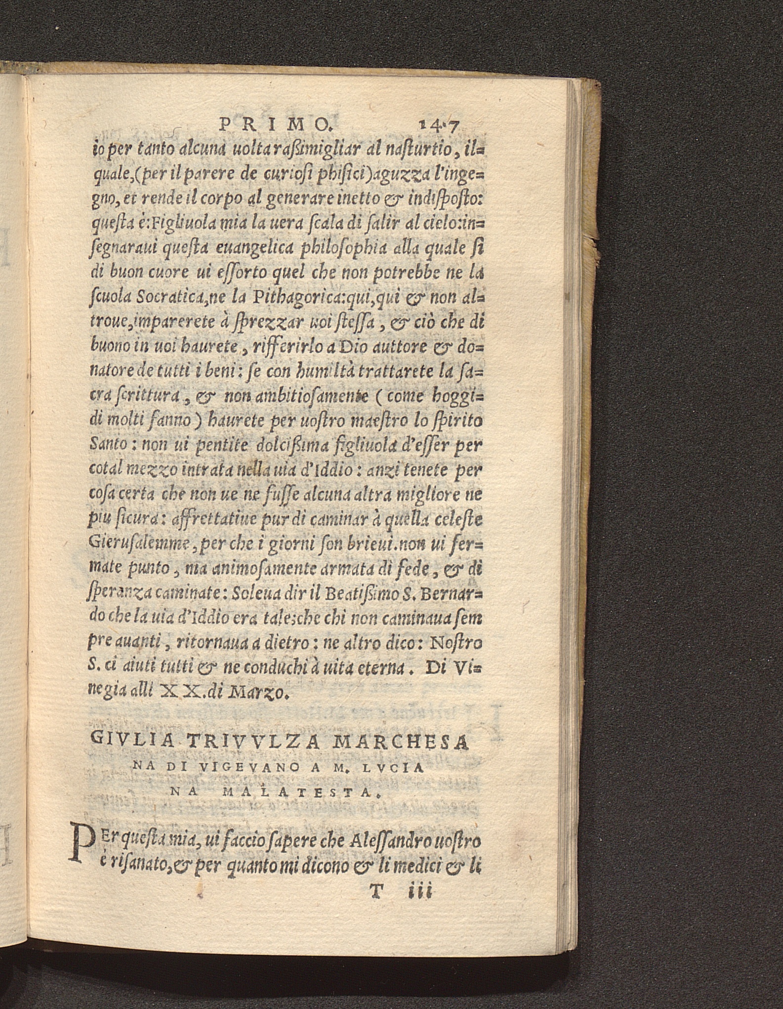 Givlia Trivvlza Marchesa Na Di Vigevano A M. Lvcia Na Malatesta.