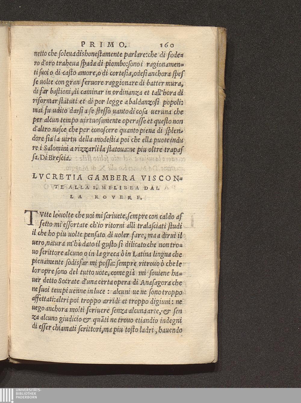 Lvcretia Gambera Visconte Alla S. Melibea Dalla Rovere.