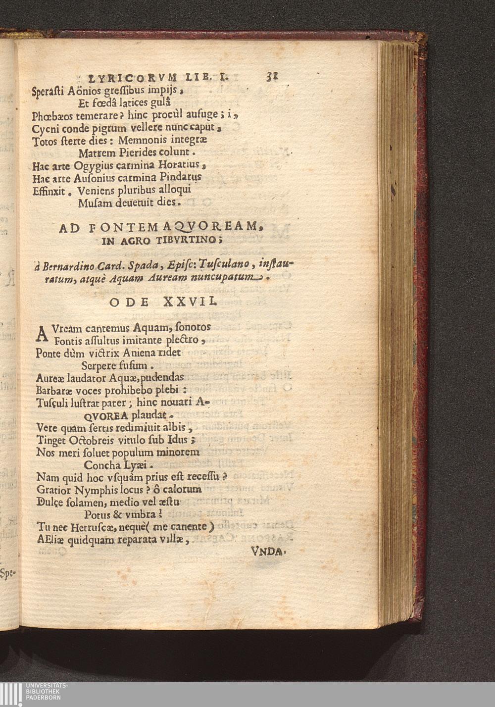Ad Fontem Aqvoream. In Agro Tibvrtion; à Bernardino Card. Spada, Episc: Tusculano,[...]