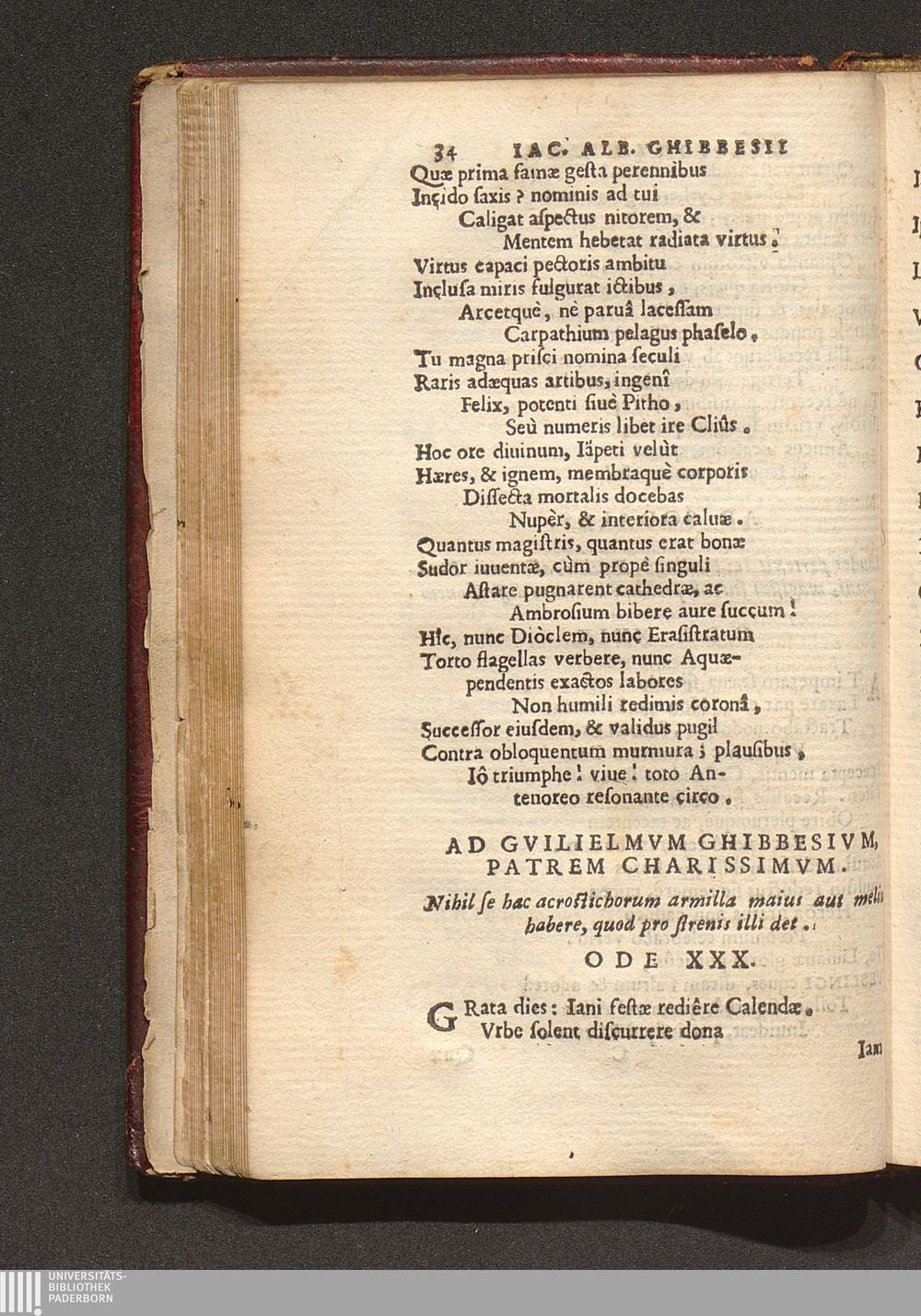 Ad Gvilielmvm Ghibbesivm, Patrem Charissimvm. Nihil hac acrostichorum armilla maius[...]