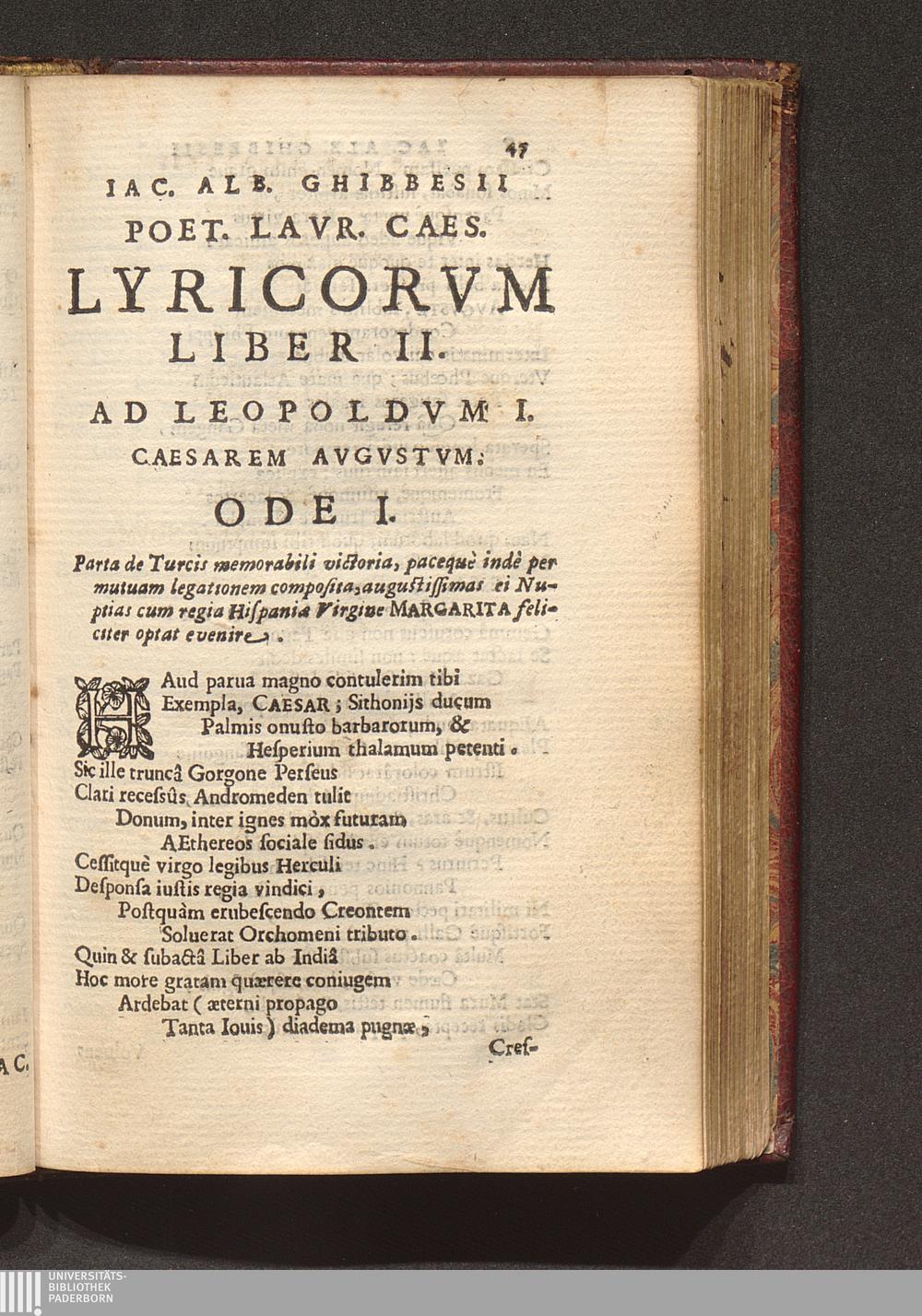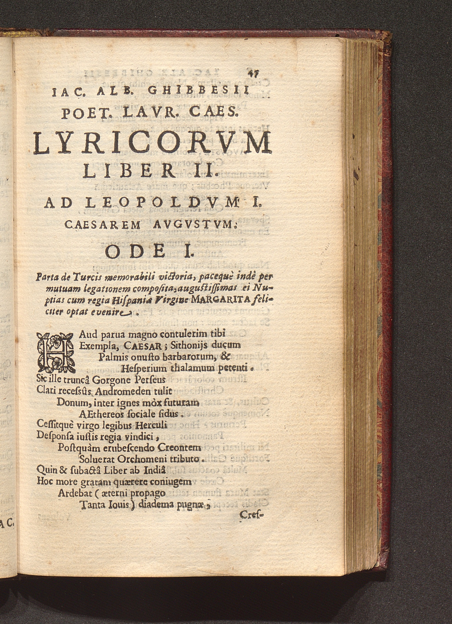 Ad Leopoldvm I. Caesarem Avgvstvm. Ode I. Parta de Turcis memorabili victoria, pacequè[...]