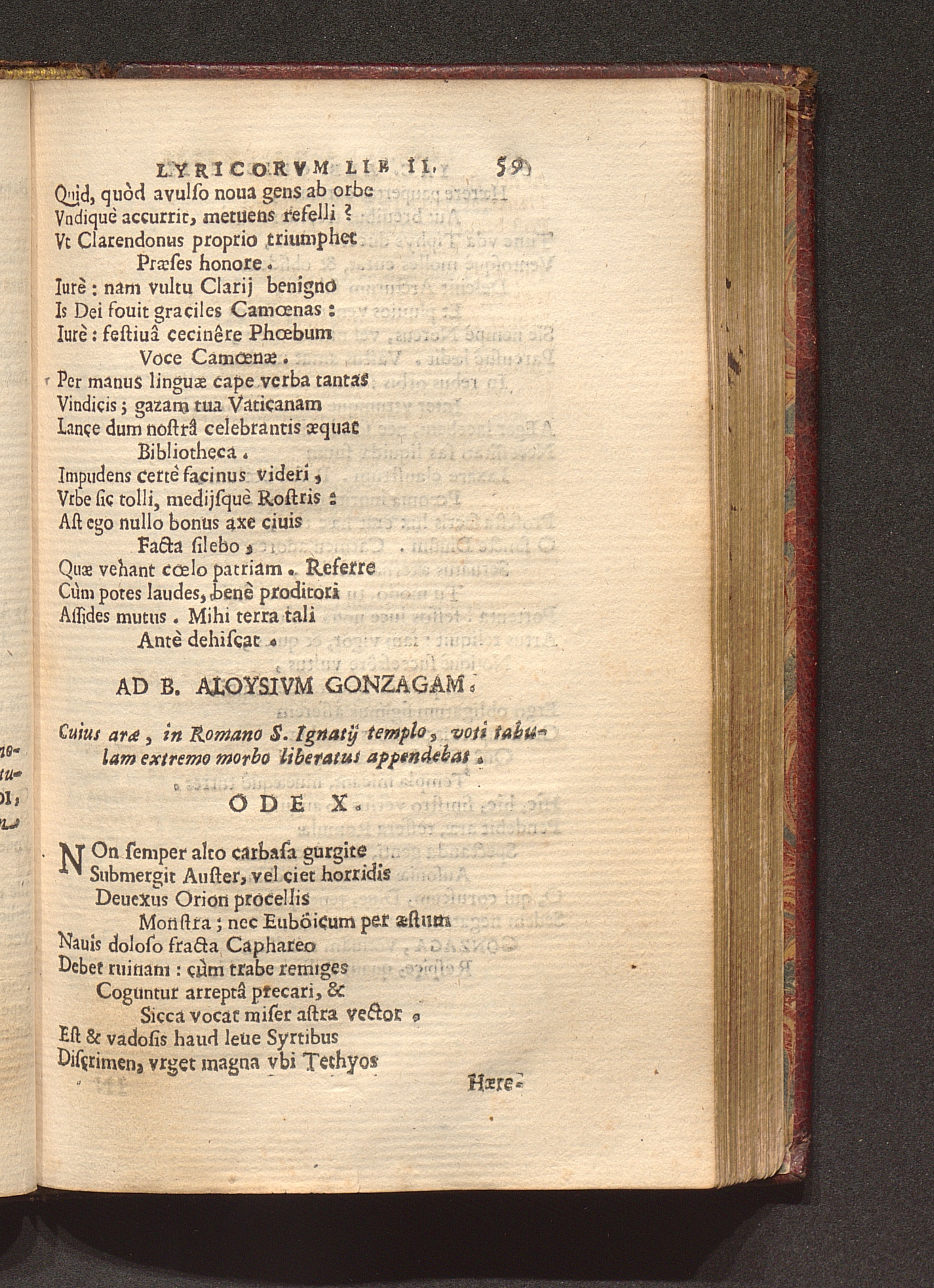 Ad B. Aloysivm Gonzagam. Cuius aræ, in Romano S. Ignatij templi, voti tabulam extremo[...]