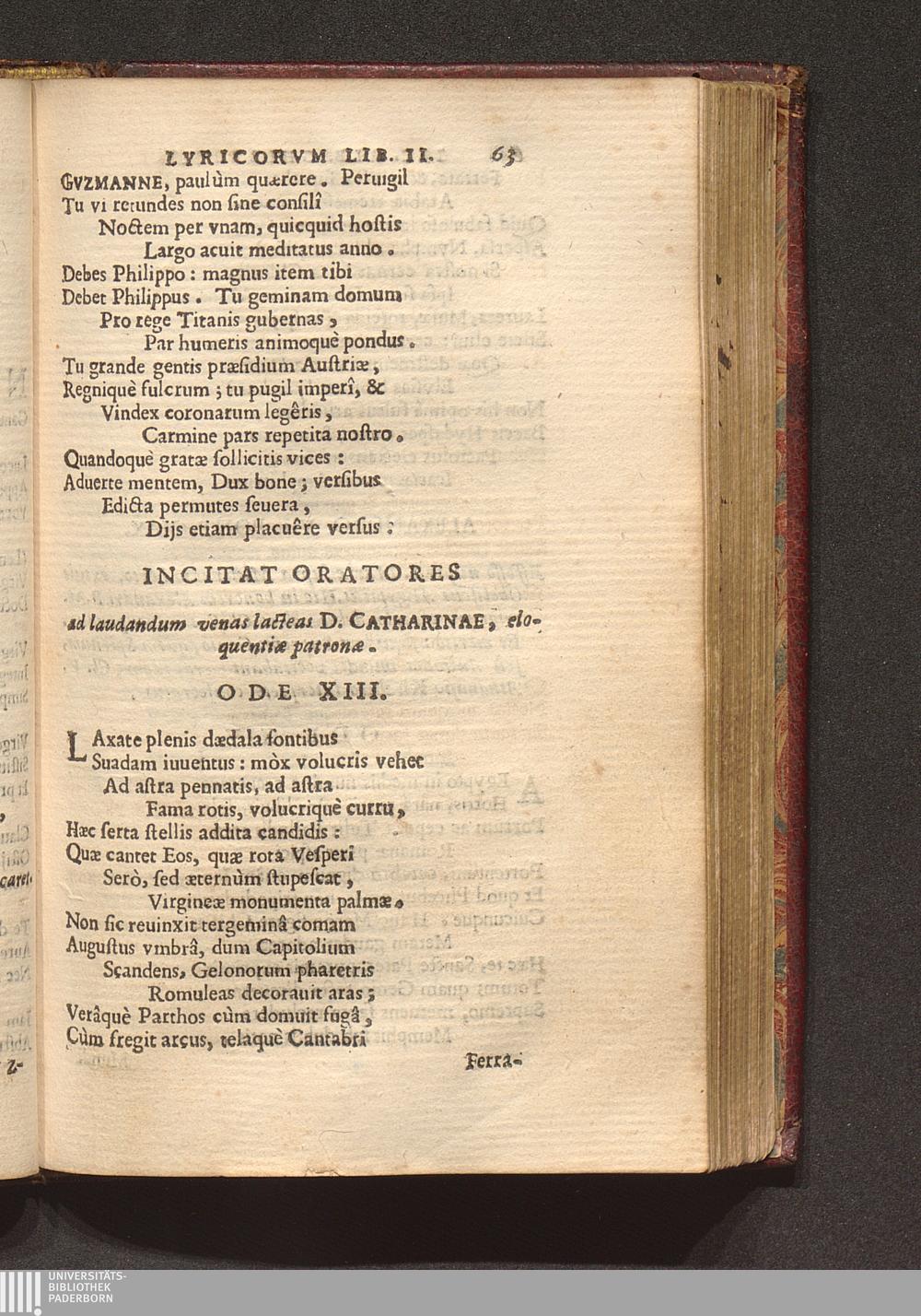 Incitat Oratores ad laudandum venas lacteas D. Catharinae, eloquentiæ patronæ. Ode[...]