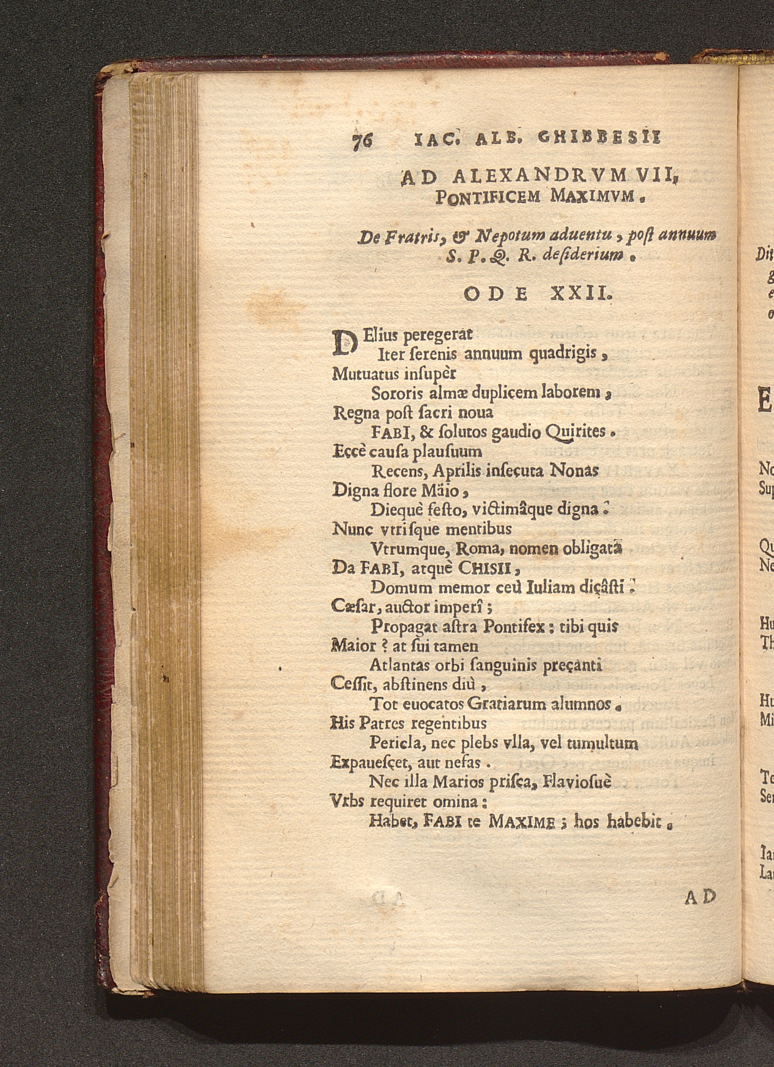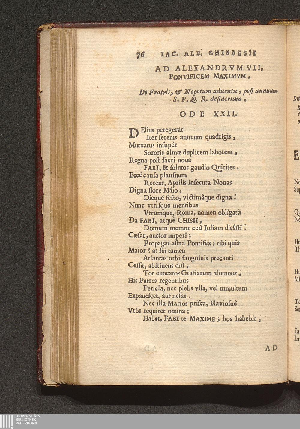 Carminvm Iacobi Albani Ghibbesii, Poetae Lavreati Caesarei, Pars Lyrica