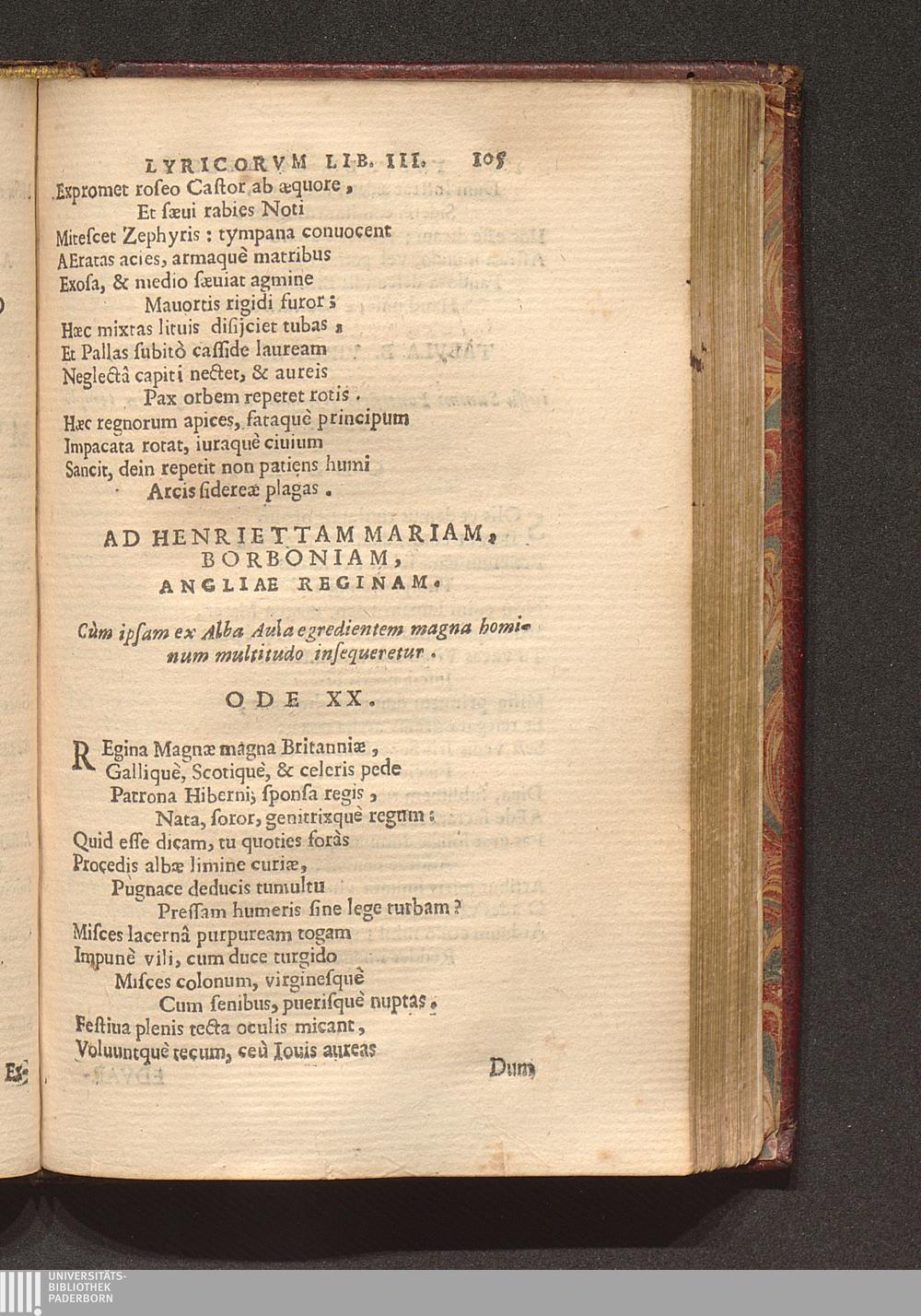 Ad Henriettam Mariam, Borboniam, Angliæ Reginam. Cùm ipsam ex Alba Aula egredientem[...]