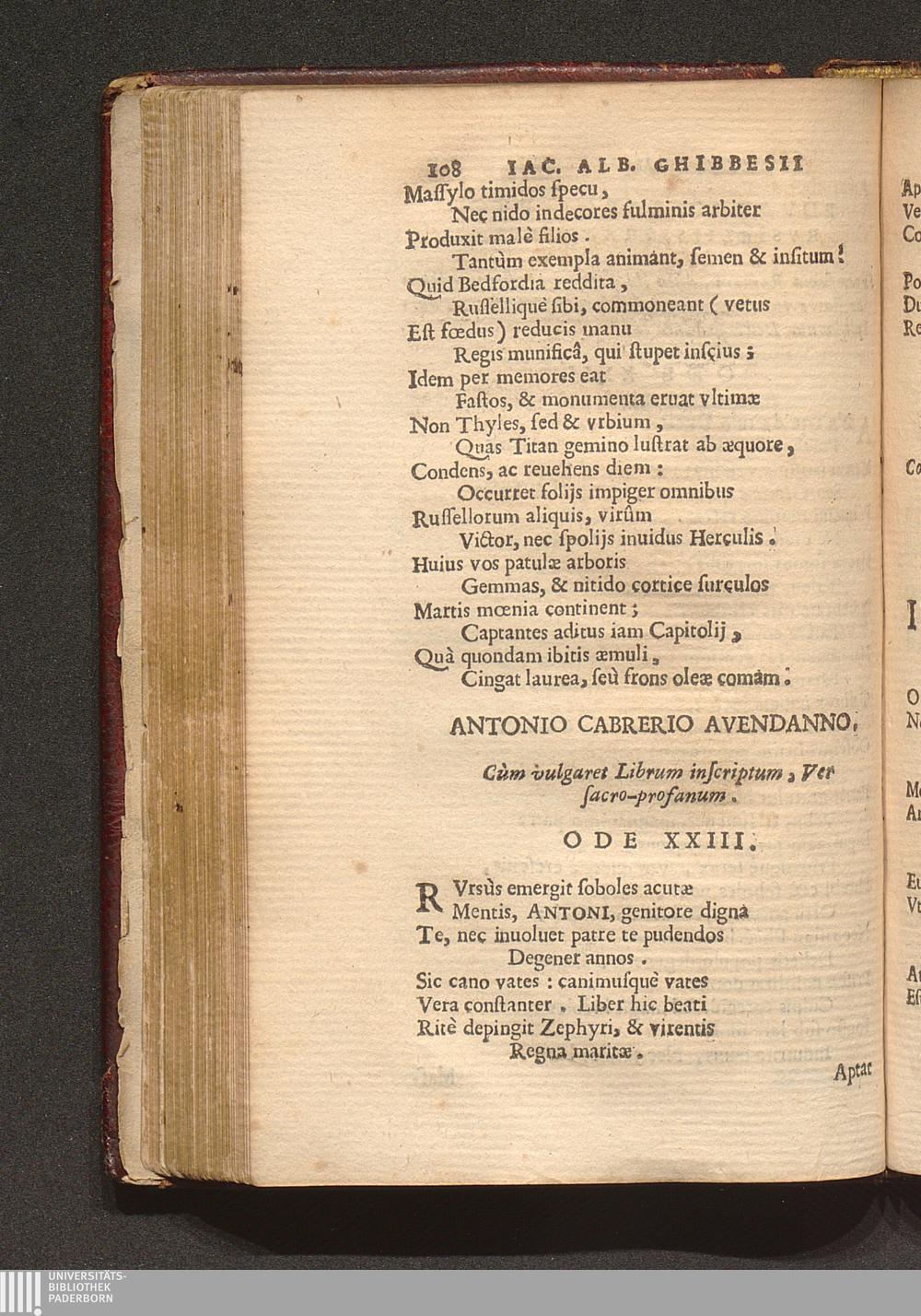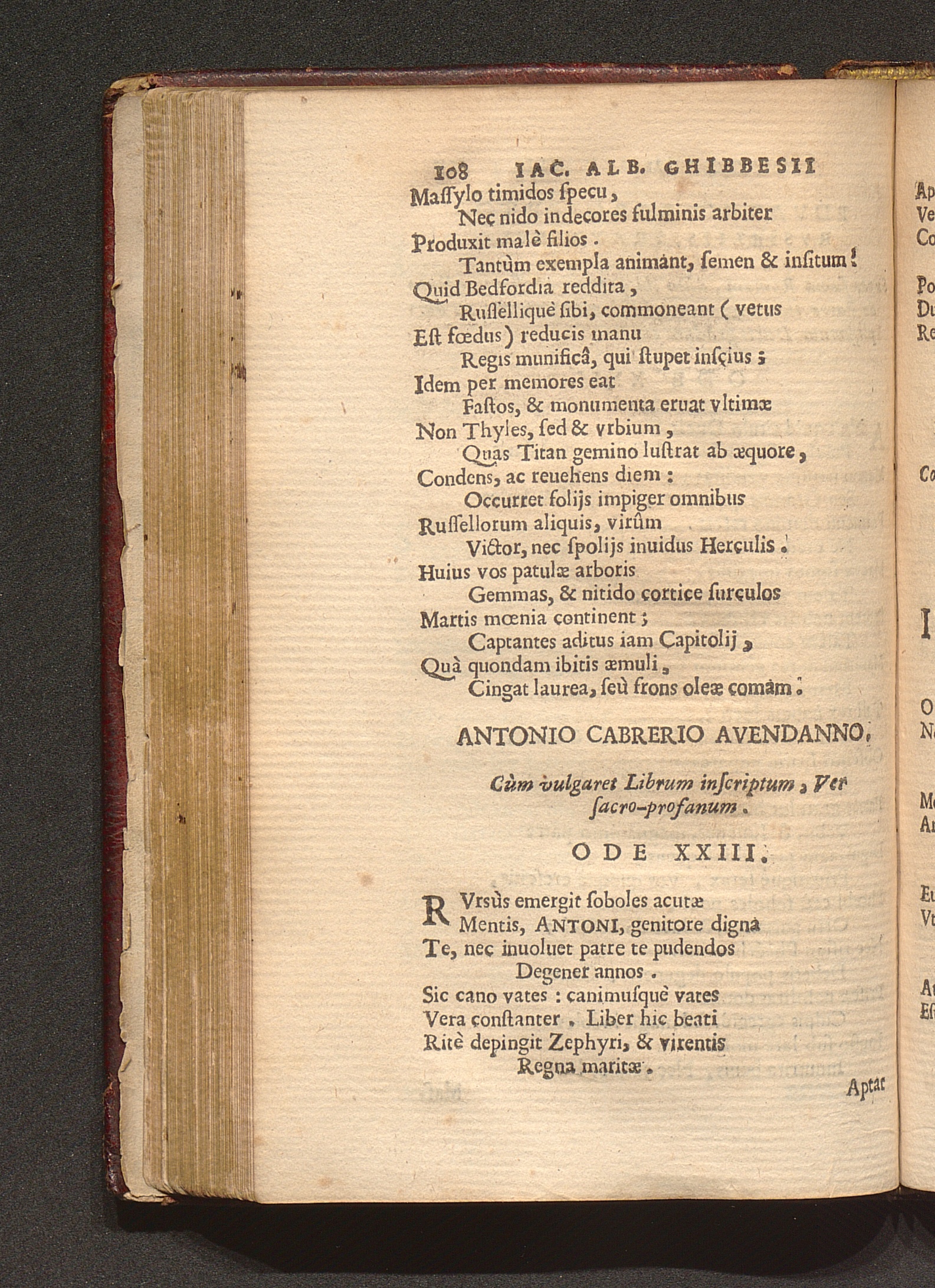 Antonio Cabrerio Avendanno, Cùm vulgaret Librum inscriptum, Ver sacro-profanum. Ode[...]