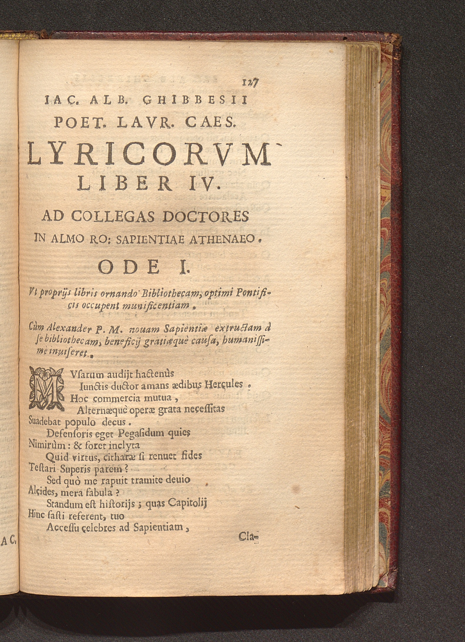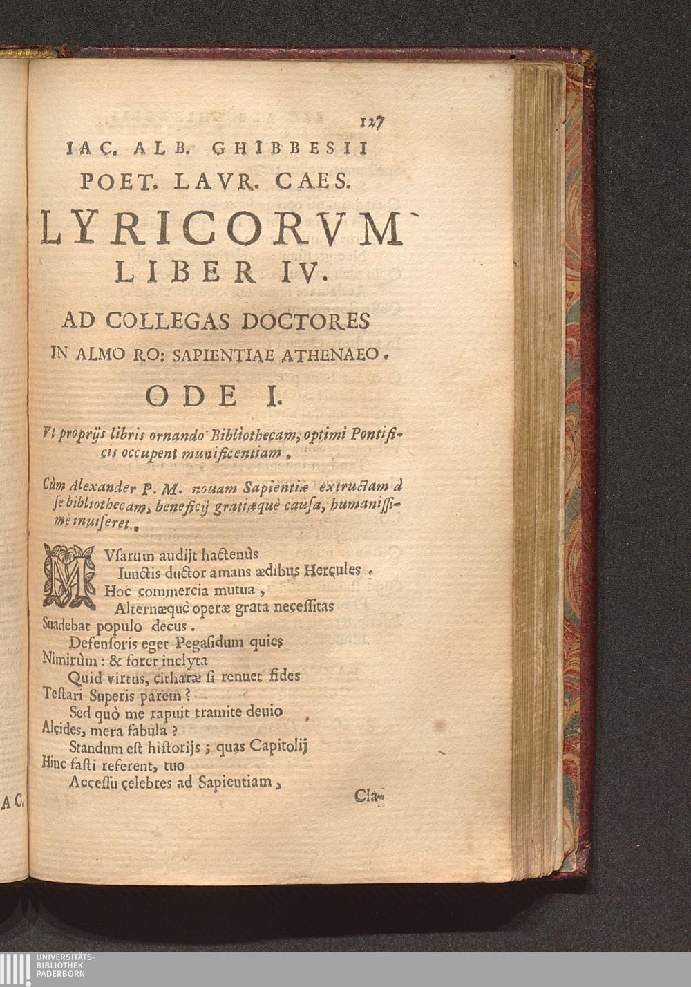 Ad Collegas Doctores In Almo Ro: Sapientiae Athenaeo. Ode I. Vt proprijs libris oranado[...]