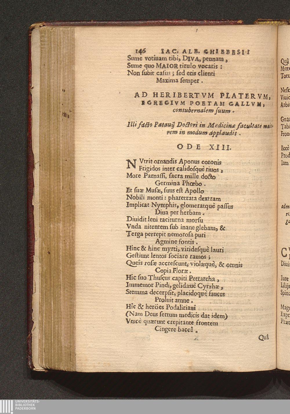 Ad Heribertvm Platervm, Egregivm Poetam Gallvm, contubernalem suum. Illi facto Patauij[...]