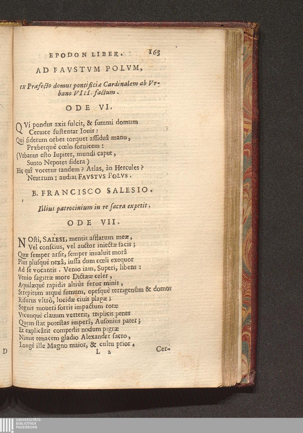 B. Francisco Salesio. Illius patrocinitm in re sacra expetit. Ode VII.