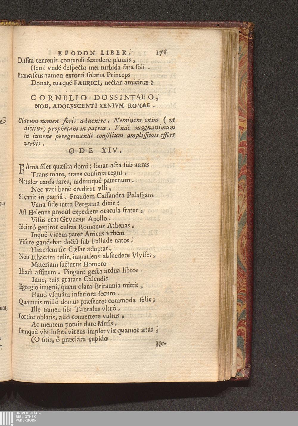 Cornelio Dossintaeo, Nob. Adolescenti Xenivm Romae. Clarum nomen foris aduenire.[...]