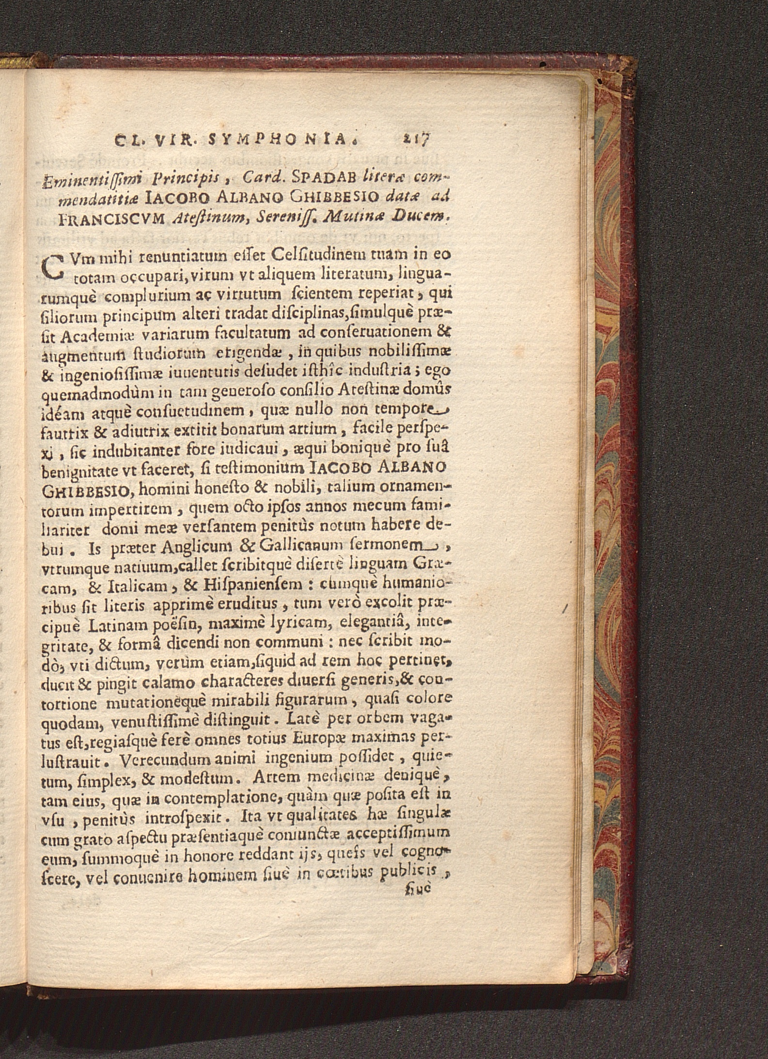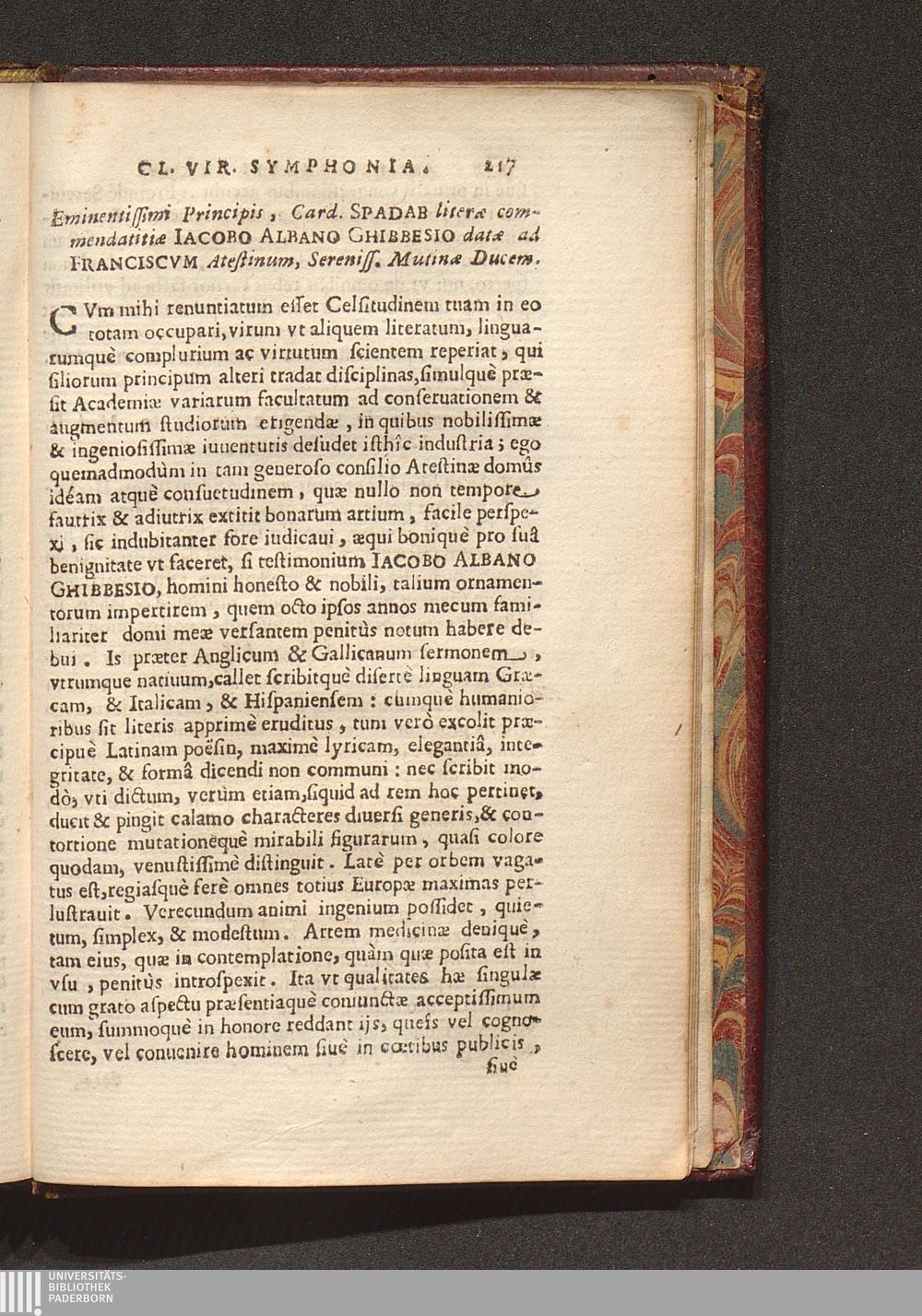 Eminentissimi Principis, Card. Spadab literæ commendatitiæ Iacobo Albano Ghibbesio[...]