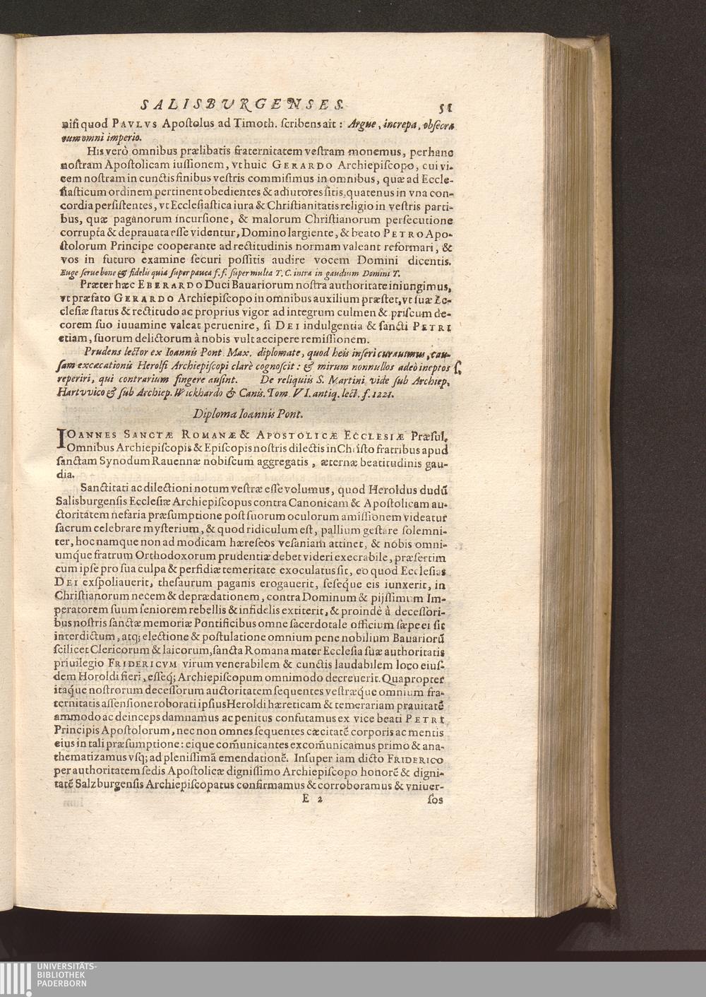 Tomus Primus (1620) Continens Primordia Christianæ Religionis Per Boiariam Et Loca quædam vicina; Catalogum videlicet & ordinariam successionem Archiepiscoporum Salisburgensium, & Coëpiscoporum, Frisingensium, Ratisponensium, Patauiensium, ac Brixinensium