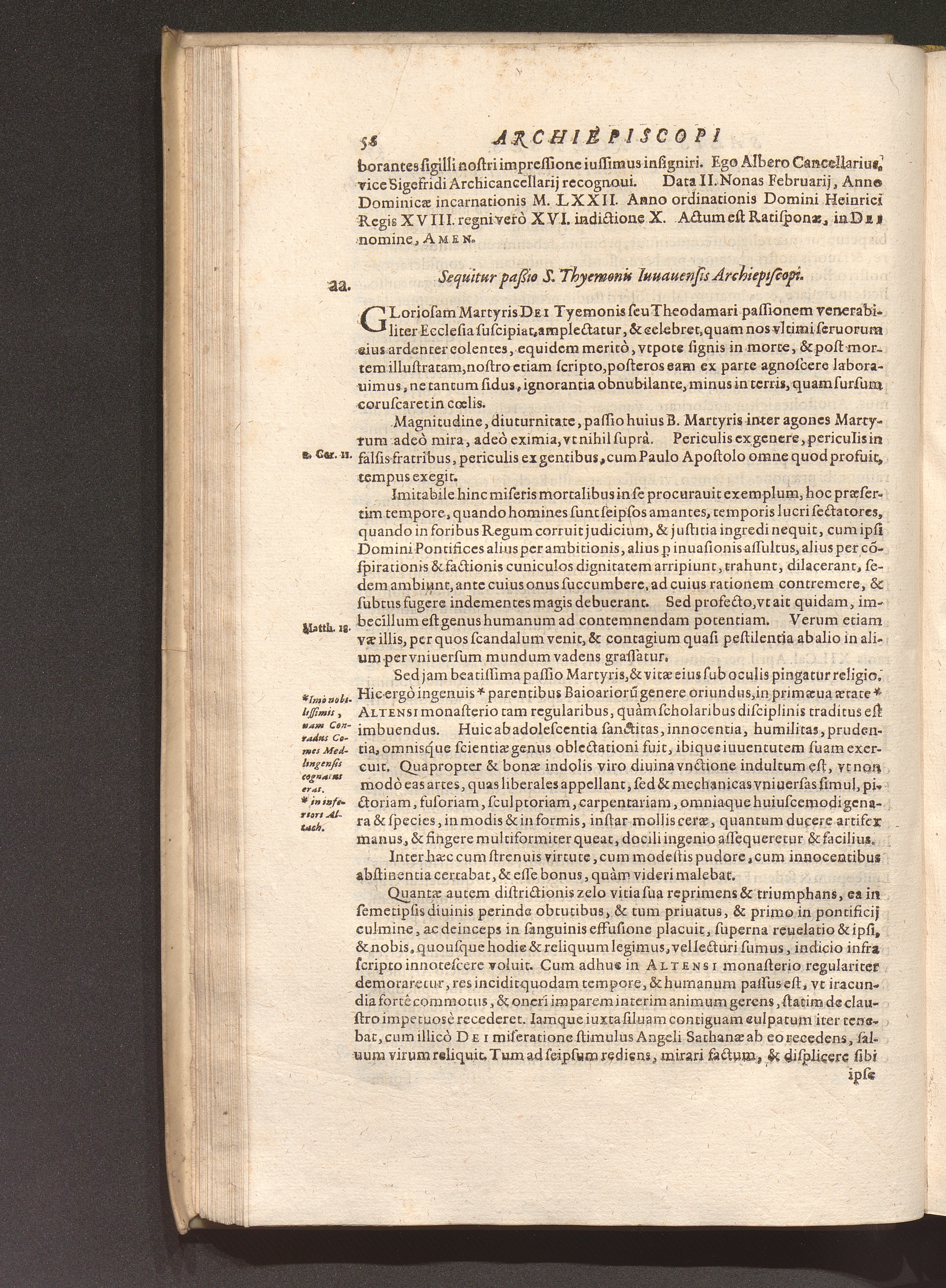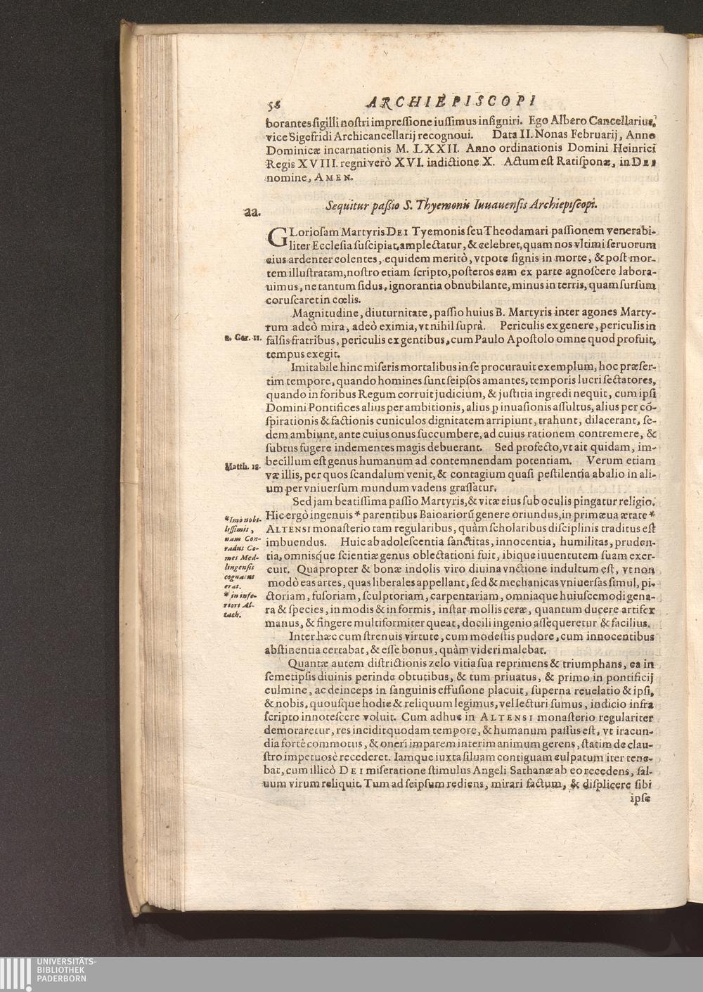 Tomus Primus (1620) Continens Primordia Christianæ Religionis Per Boiariam Et Loca quædam vicina; Catalogum videlicet & ordinariam successionem Archiepiscoporum Salisburgensium, & Coëpiscoporum, Frisingensium, Ratisponensium, Patauiensium, ac Brixinensium