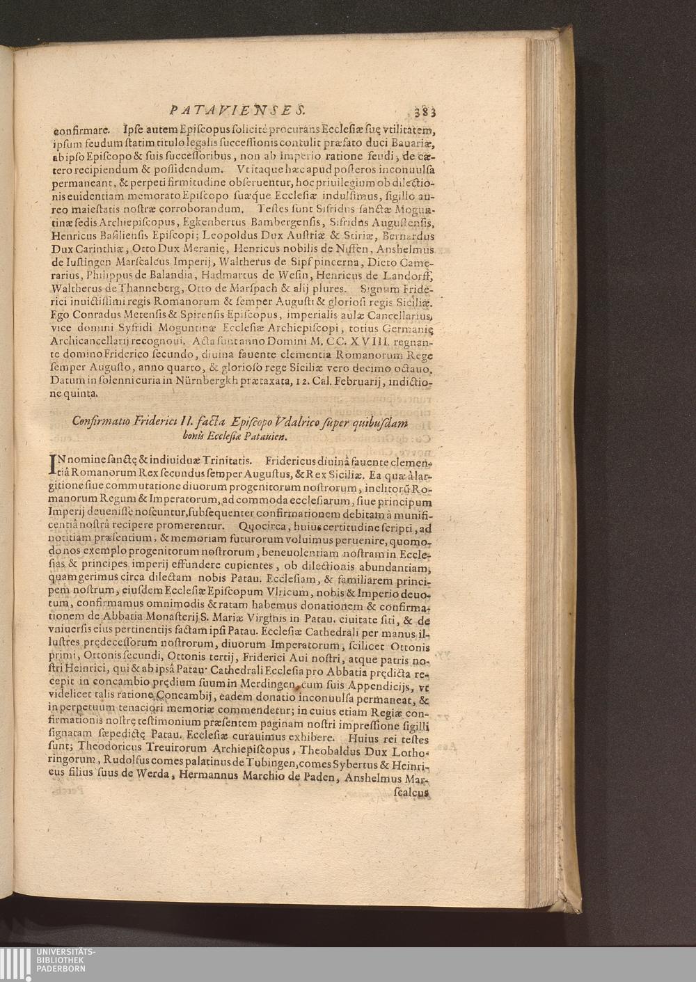 Tomus Primus (1620) Continens Primordia Christianæ Religionis Per Boiariam Et Loca quædam vicina; Catalogum videlicet & ordinariam successionem Archiepiscoporum Salisburgensium, & Coëpiscoporum, Frisingensium, Ratisponensium, Patauiensium, ac Brixinensium