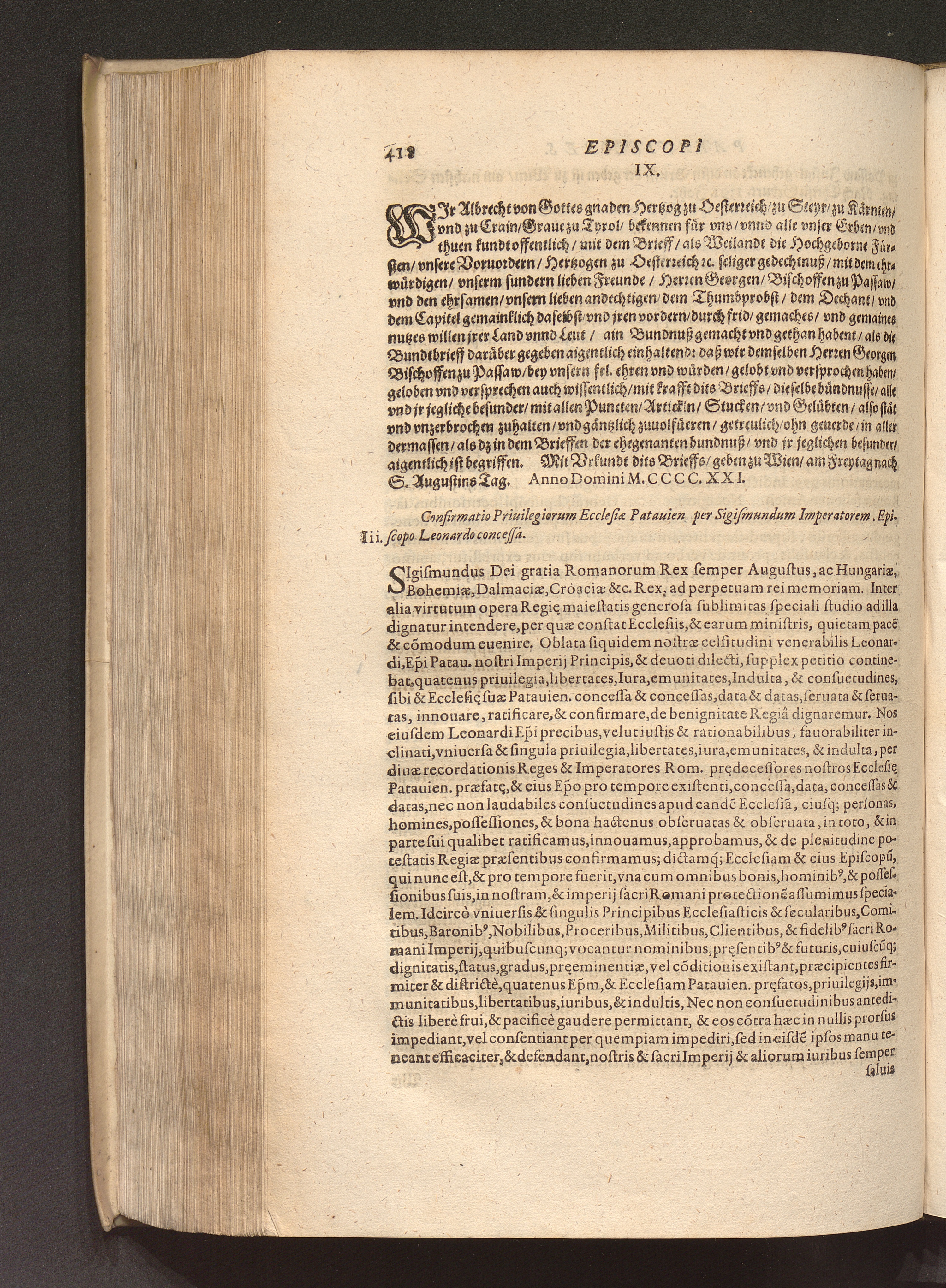 Tomus Primus (1620) Continens Primordia Christianæ Religionis Per Boiariam Et Loca quædam vicina; Catalogum videlicet & ordinariam successionem Archiepiscoporum Salisburgensium, & Coëpiscoporum, Frisingensium, Ratisponensium, Patauiensium, ac Brixinensium