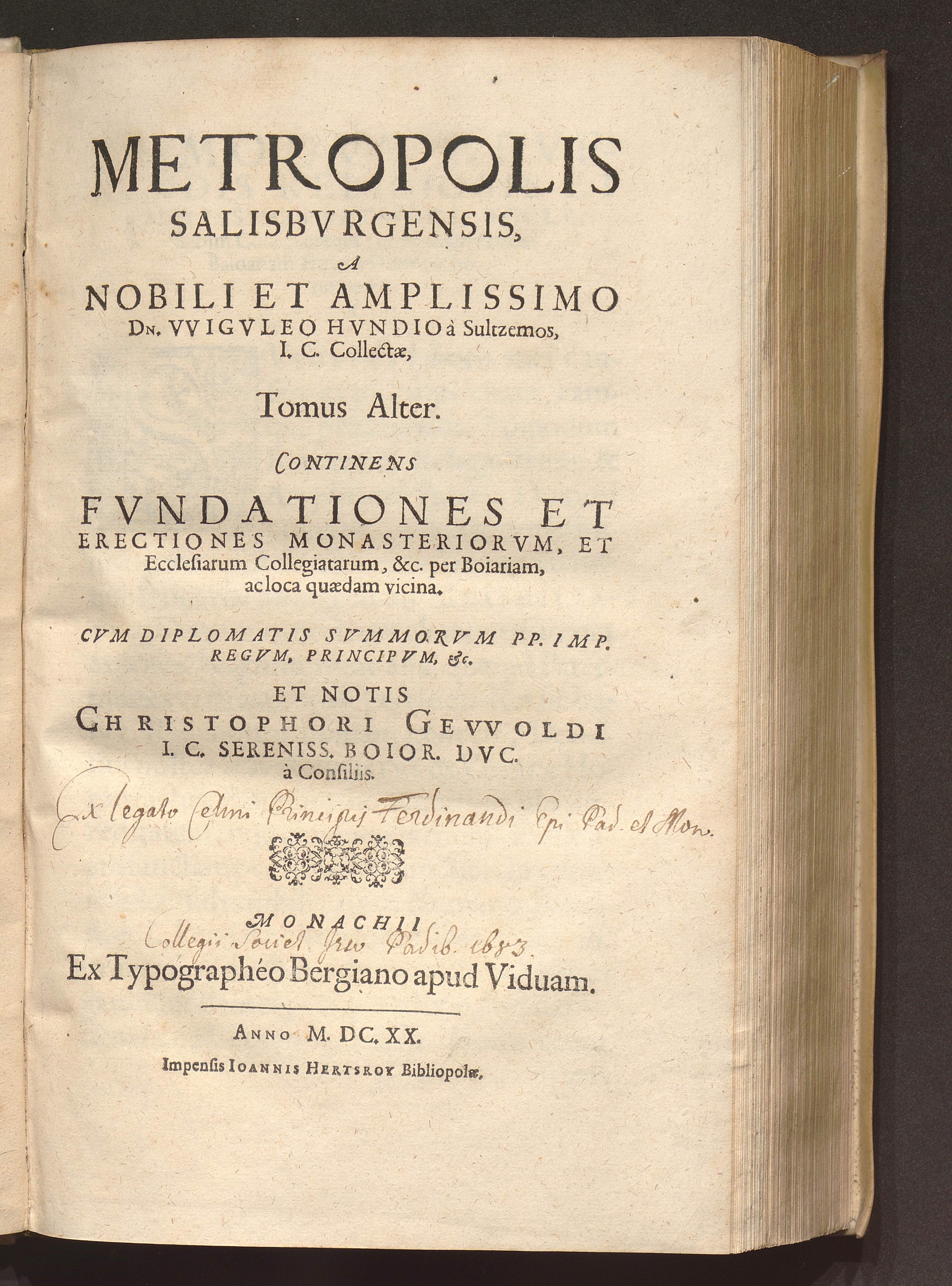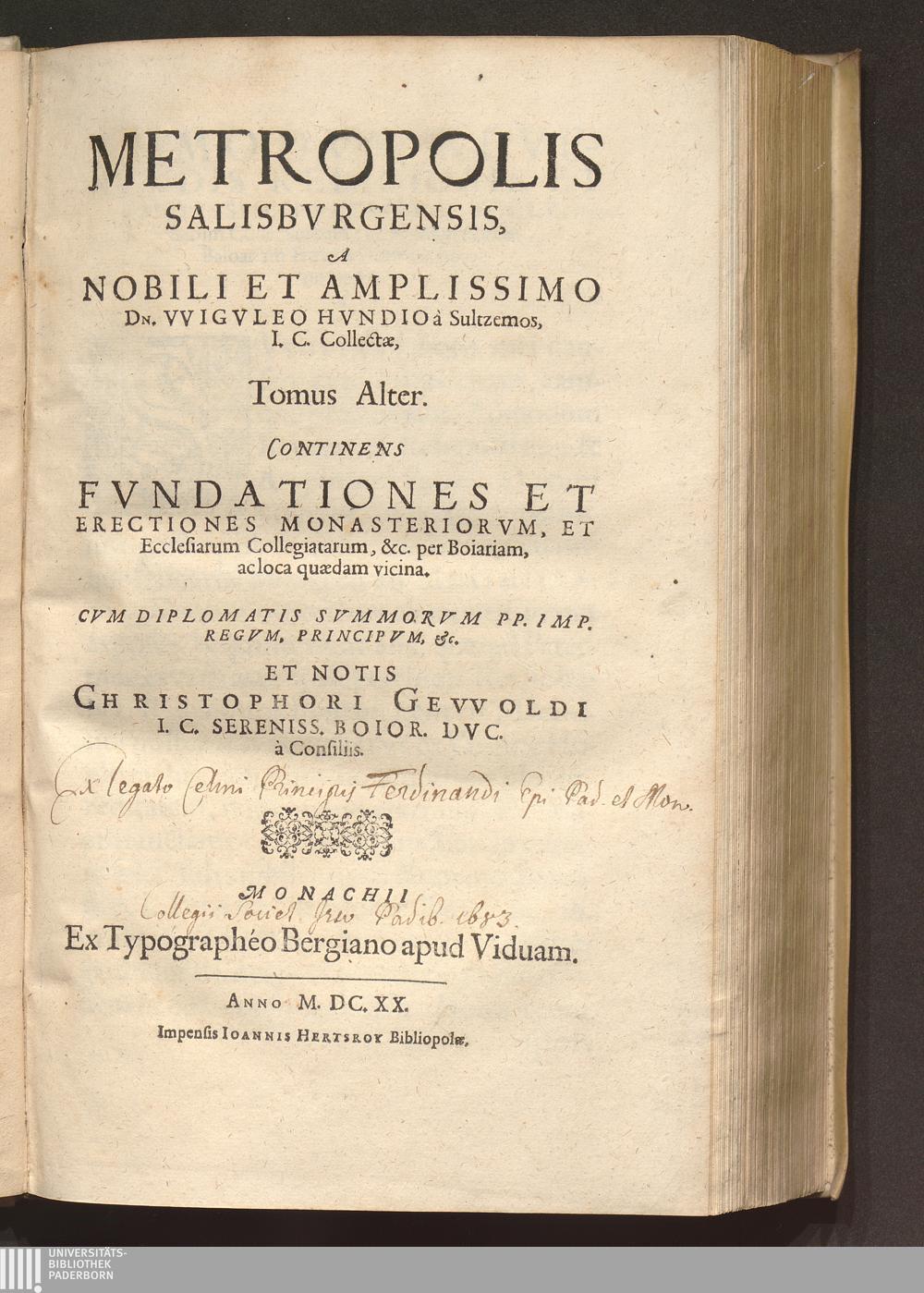 Tomus Alter (1620) Continens Fvndationes Et Erectiones Monasteriorvm, Et Ecclesiarum Collegiatarum, &c. per Boiariam, ac loca quædam vicina