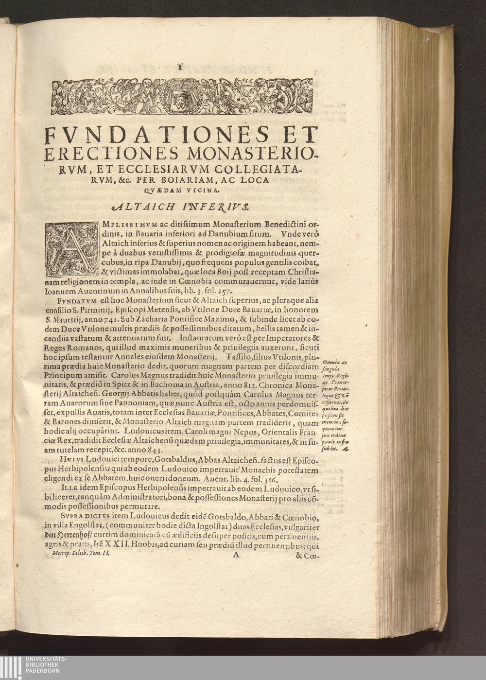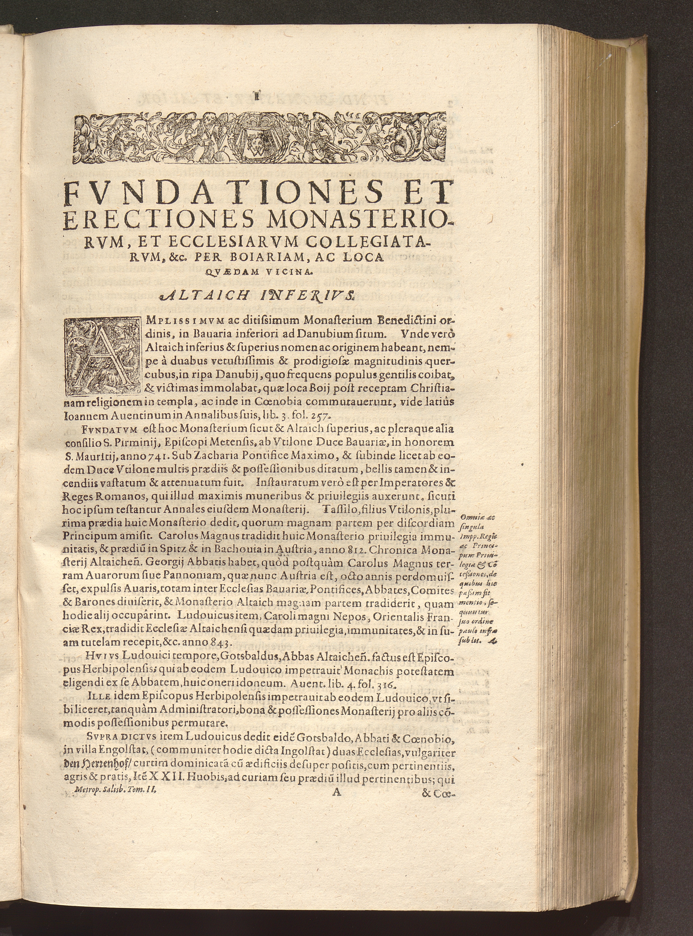 Tomus Alter (1620) Continens Fvndationes Et Erectiones Monasteriorvm, Et Ecclesiarum Collegiatarum, &c. per Boiariam, ac loca quædam vicina
