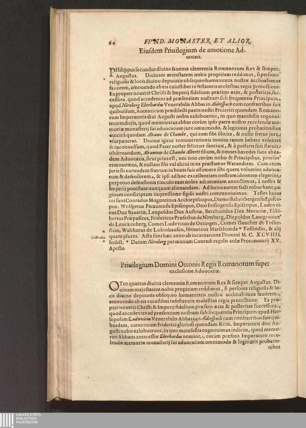 Priuilegium Domini Ottonis Regis Romanorum super exclusione Aduocatiae.