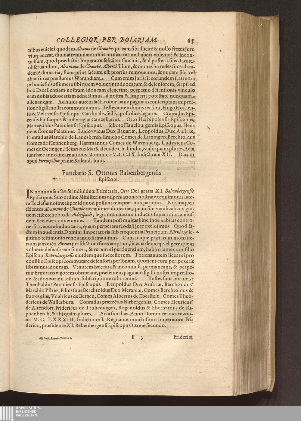 Tomus Alter (1620) Continens Fvndationes Et Erectiones Monasteriorvm, Et Ecclesiarum Collegiatarum, &c. per Boiariam, ac loca quædam vicina