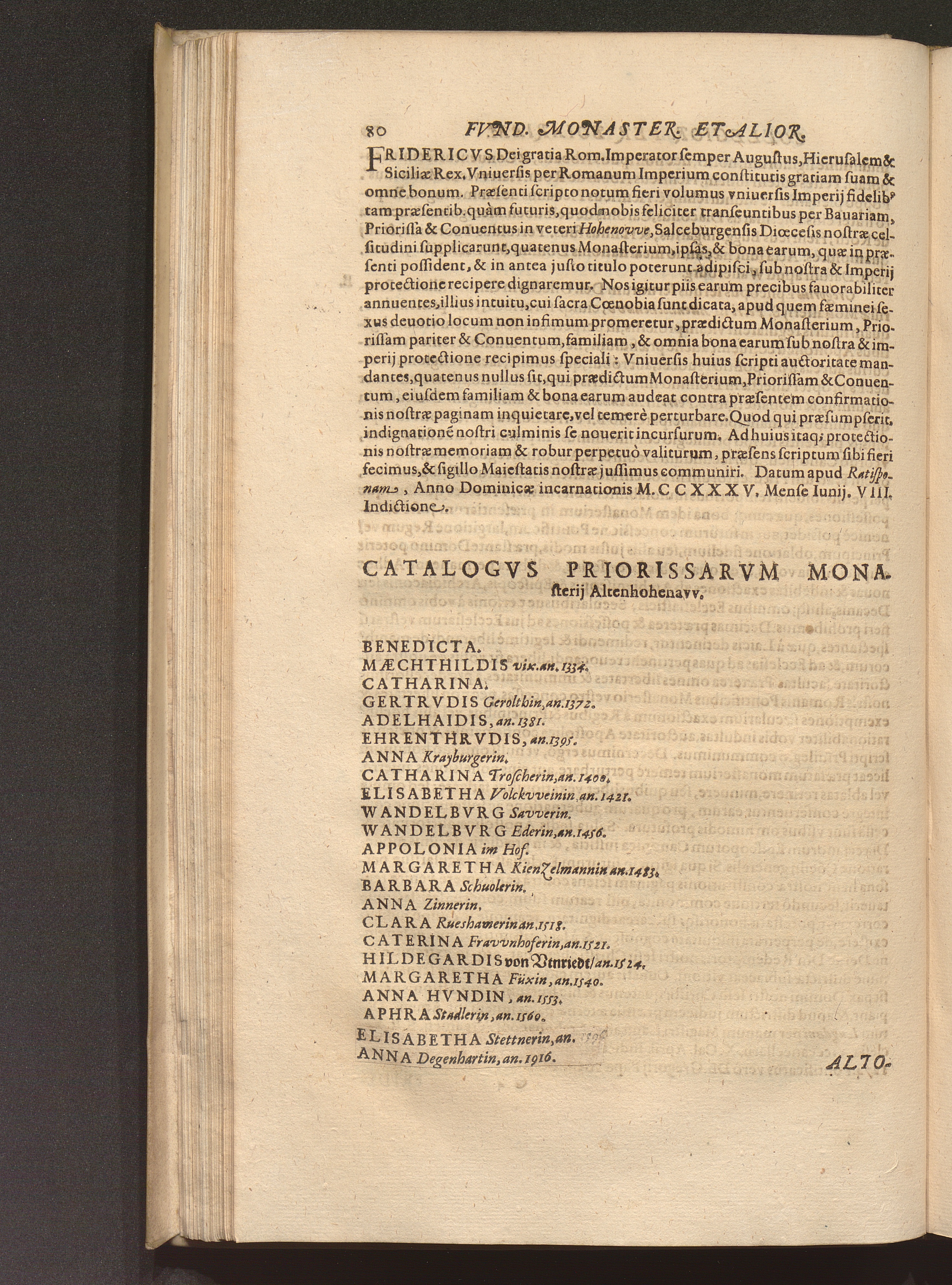 Catalogvs Priorissarvm Monasterij Altenhohenavv.