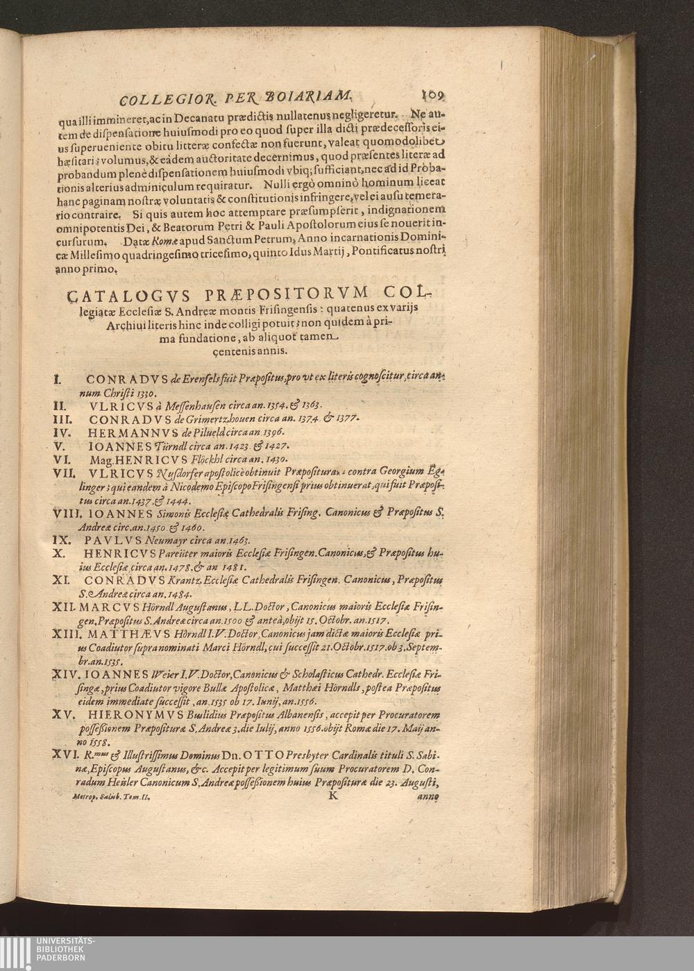 Catalogvs Praepositorvm Collegiatae Ecclesiae S. Andreae montis Frisingensis: quatenus[...]