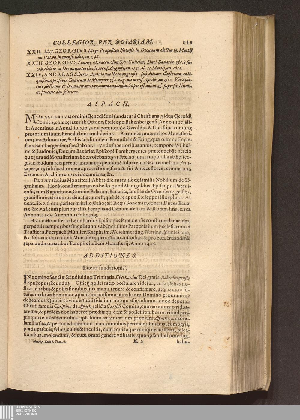 Tomus Alter (1620) Continens Fvndationes Et Erectiones Monasteriorvm, Et Ecclesiarum Collegiatarum, &c. per Boiariam, ac loca quædam vicina