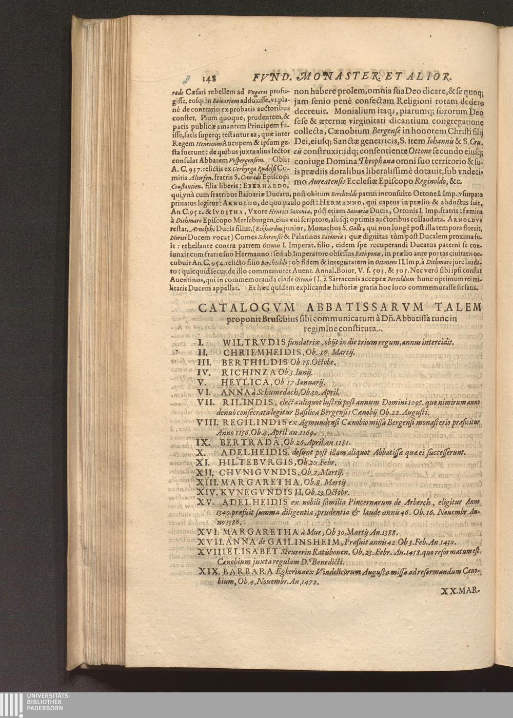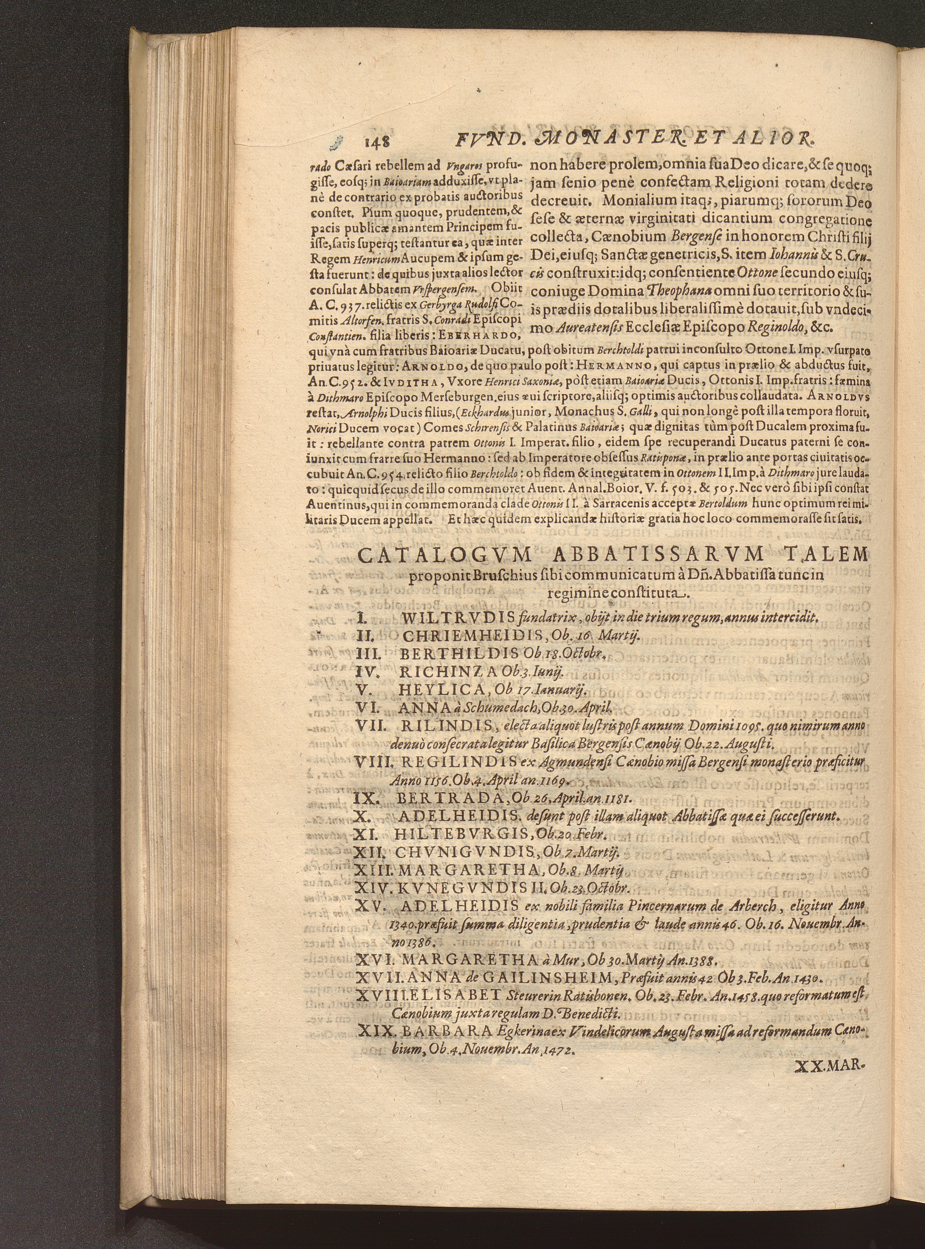 Catalogvm Abbatissarvm Talem proponit Bruschius sibi communicatum à D[omi]n[i] Abbatissa[...]