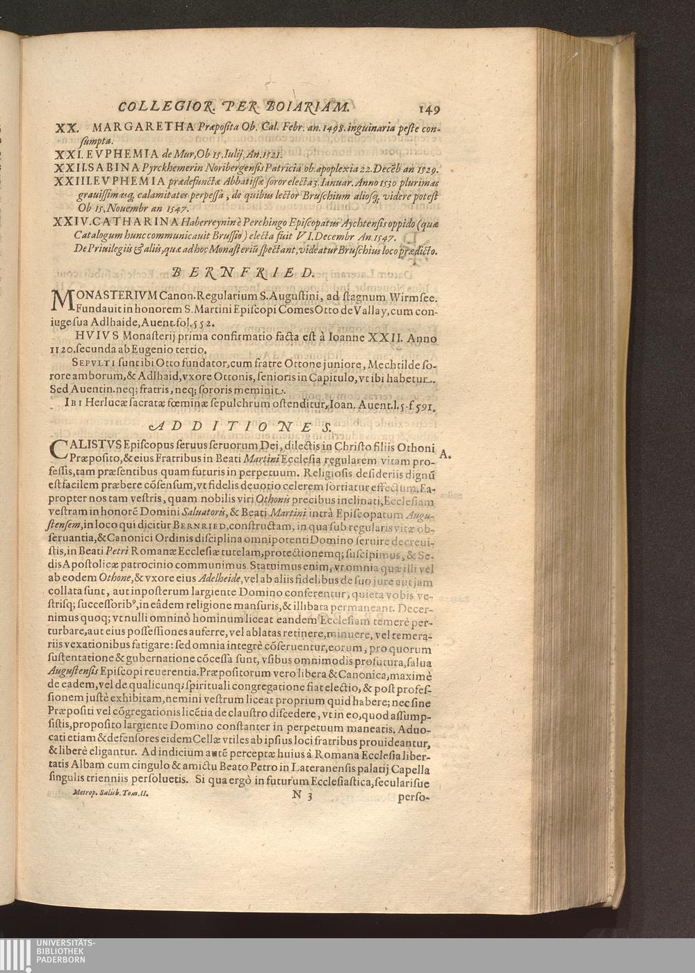 Tomus Alter (1620) Continens Fvndationes Et Erectiones Monasteriorvm, Et Ecclesiarum Collegiatarum, &c. per Boiariam, ac loca quædam vicina