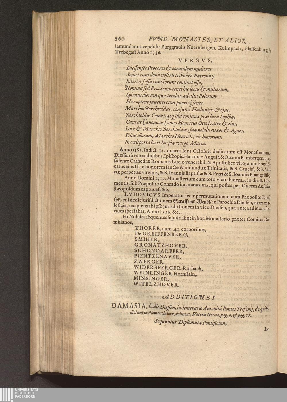 Additiones. Damasia, hodie Diessen, in Itinerario Antonini Pontes Tesfenij, de quib.[...]