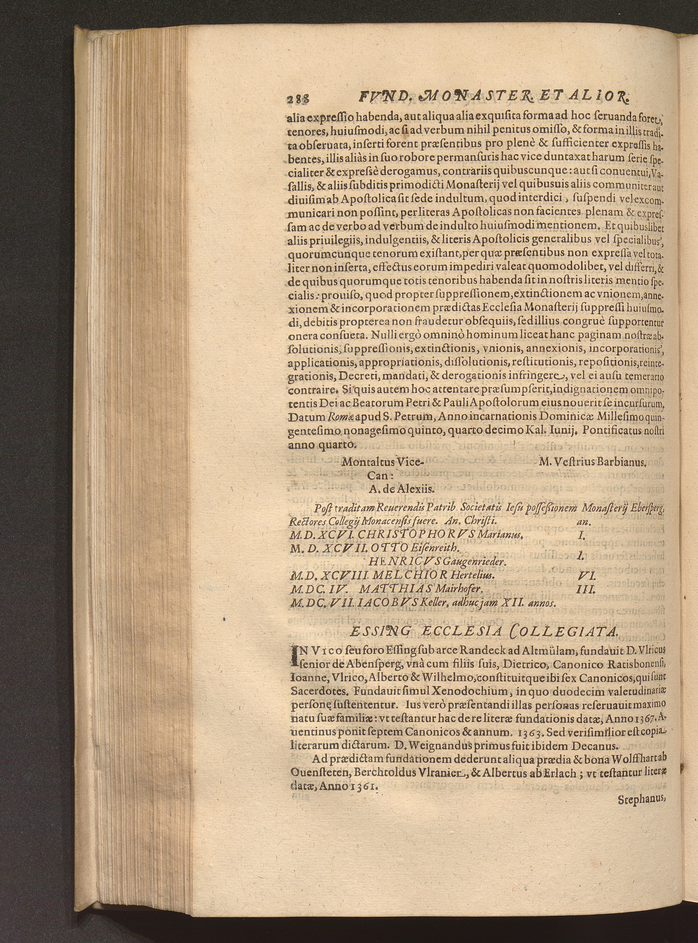 Continens Fvndationes Et Erectiones Monasteriorvm, Et Ecclesiarum Collegiatarum,[...]