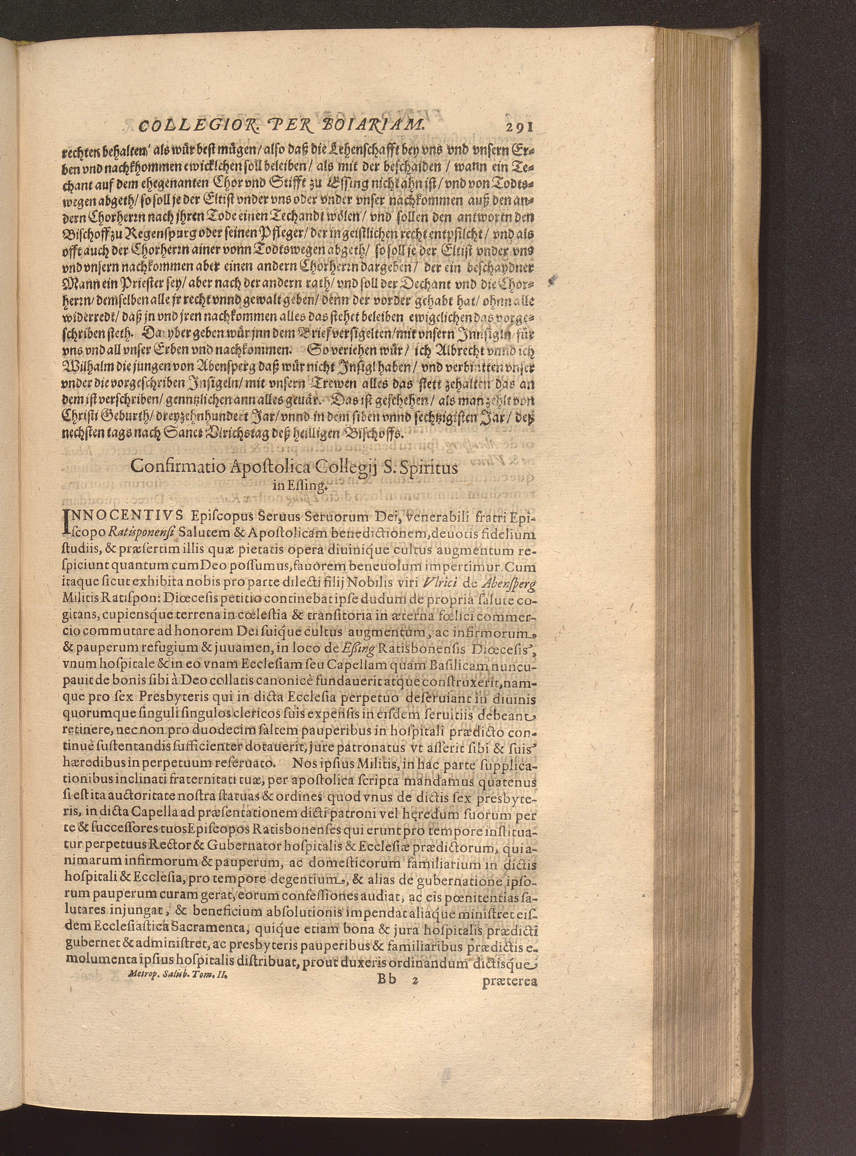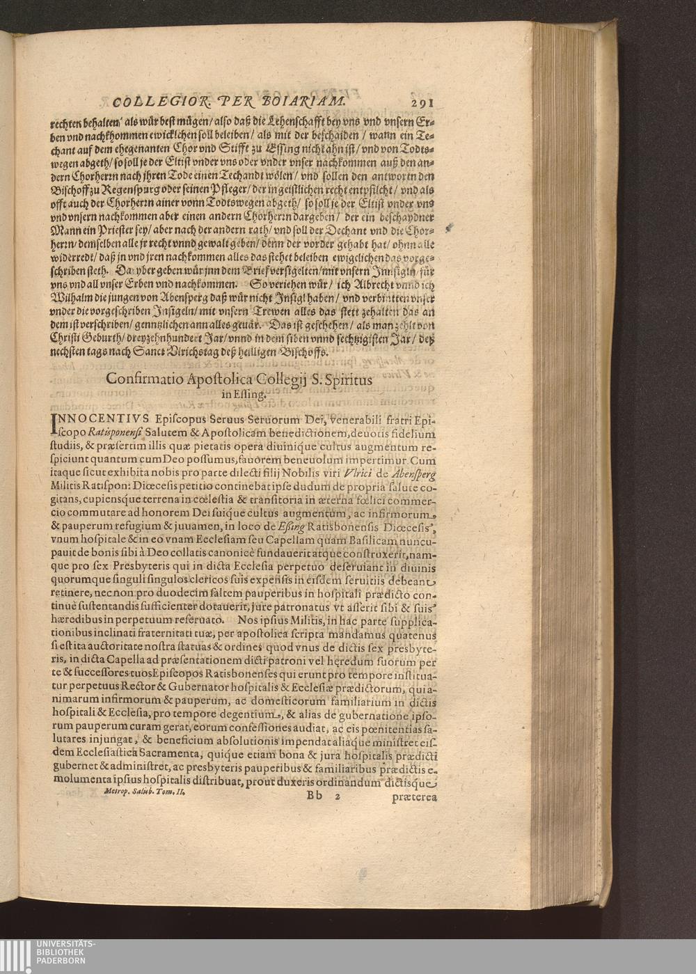 Confirmatio Apostolica Collegij S. Spiritus in Essing.