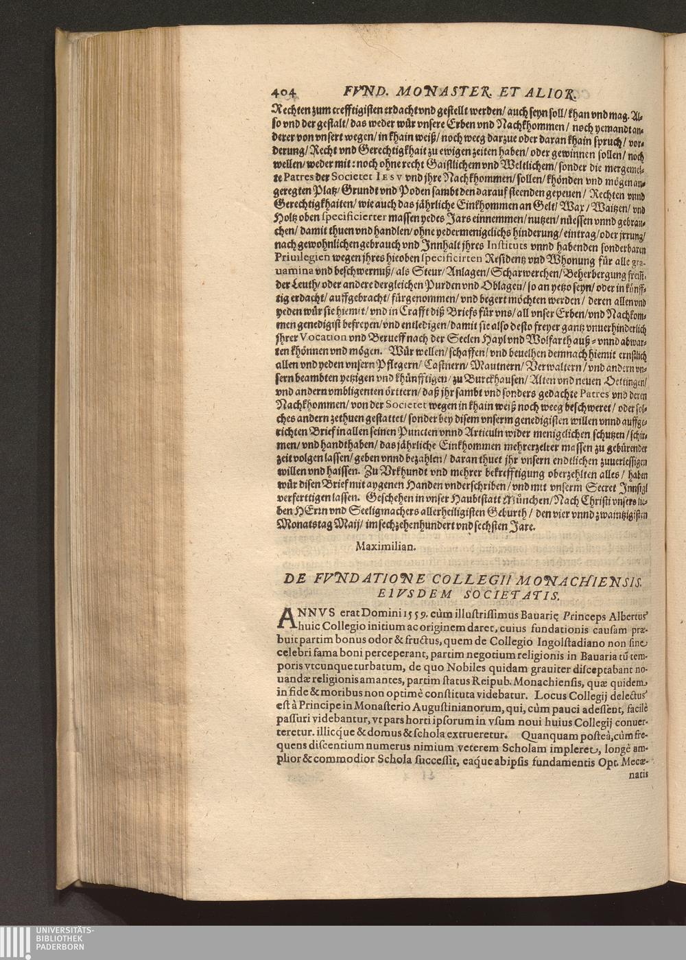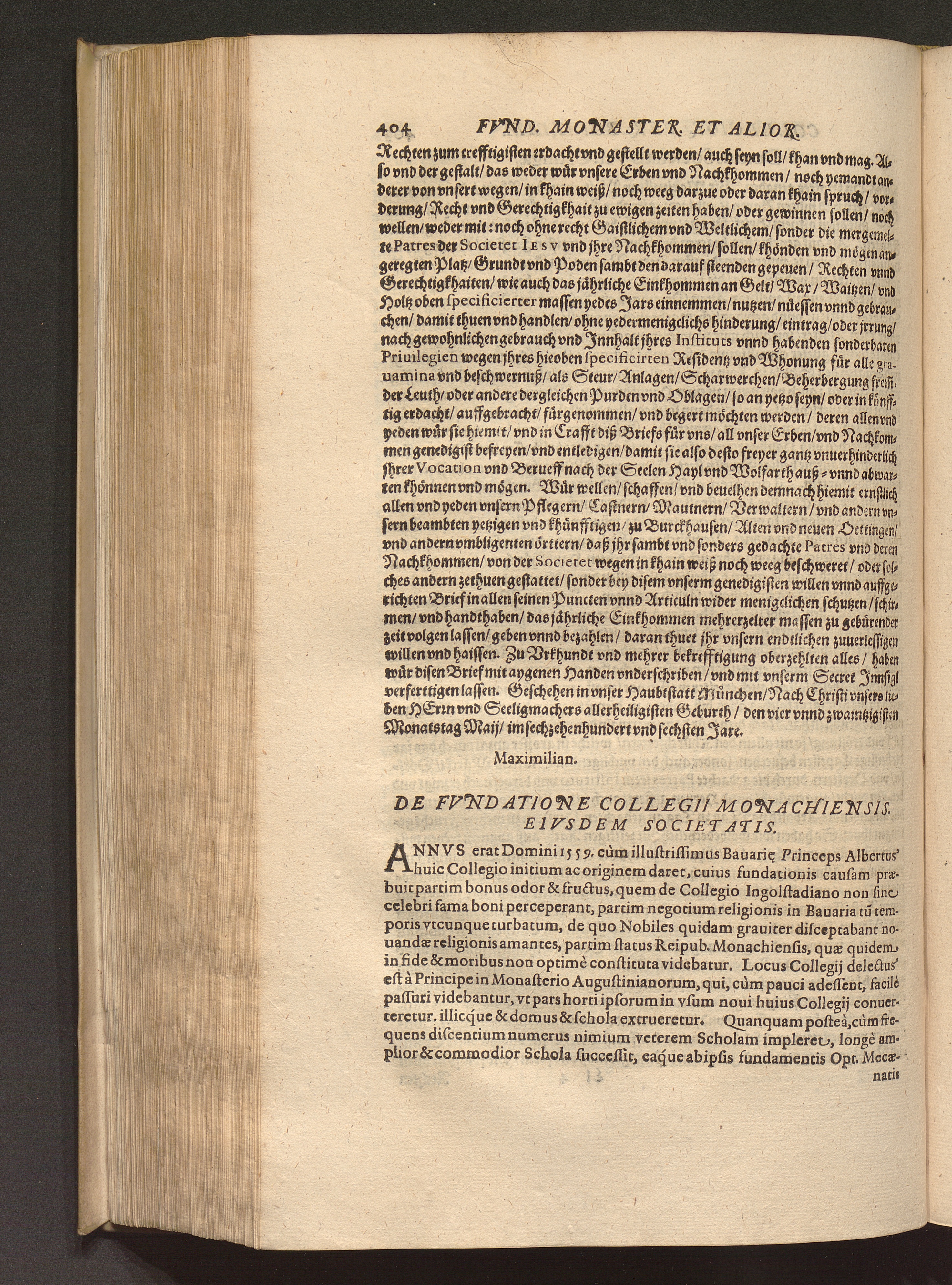 De Fvndatione Collegii Monachiensis. Eivsdem Societatis.