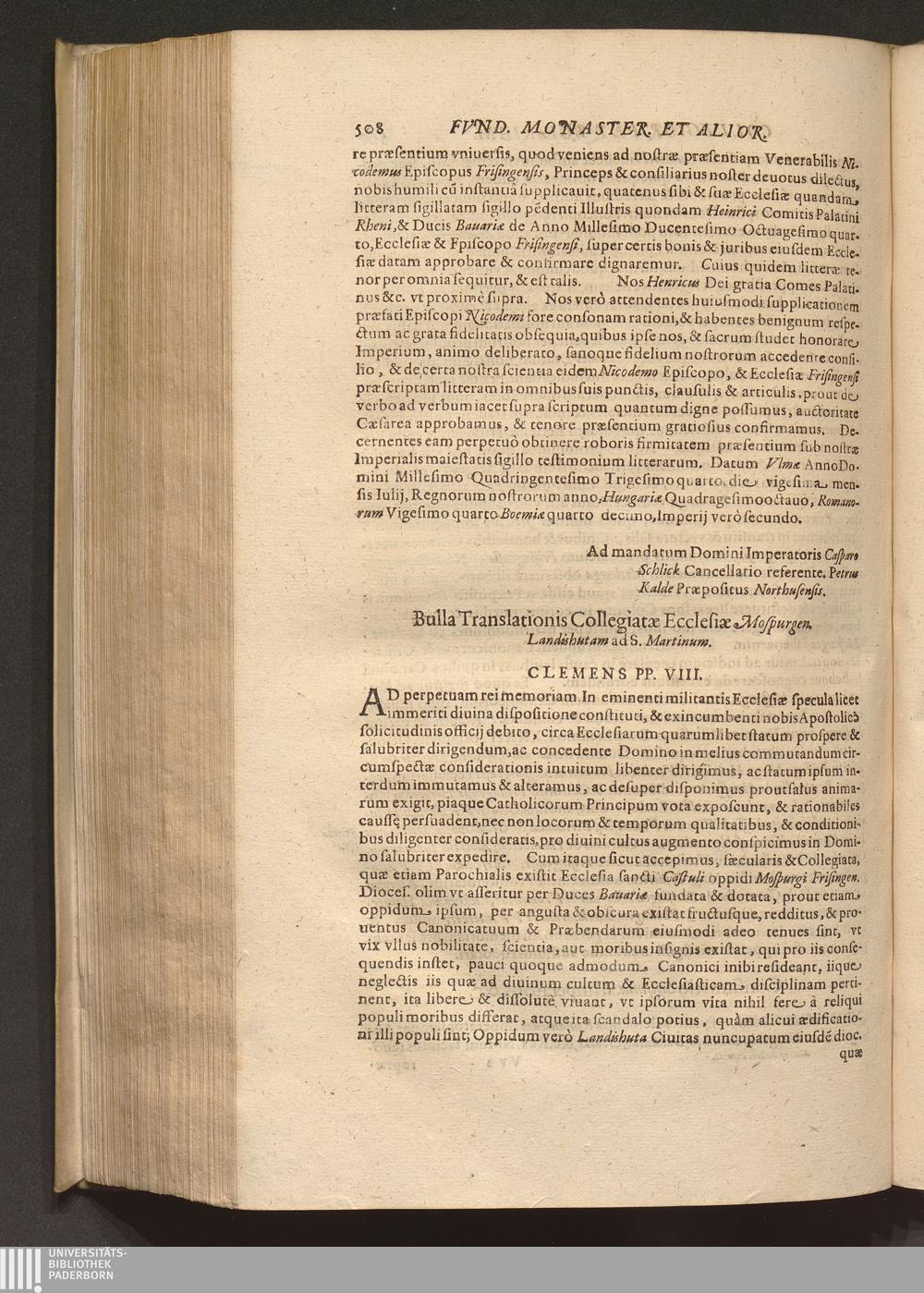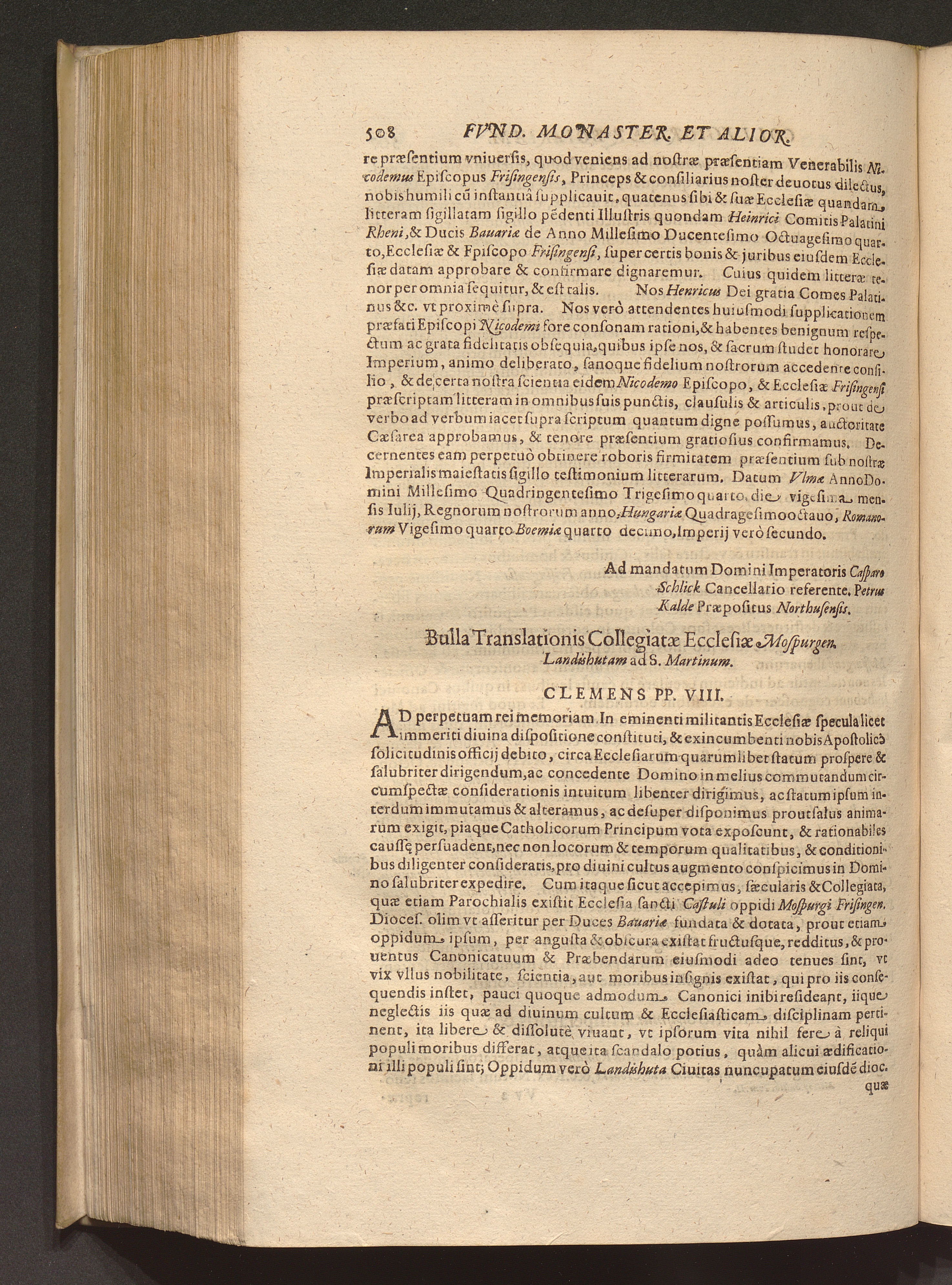 Bulla Translationis Collegiatae Ecclesiae Mospurgen. Landishutam ad S. Martinum.