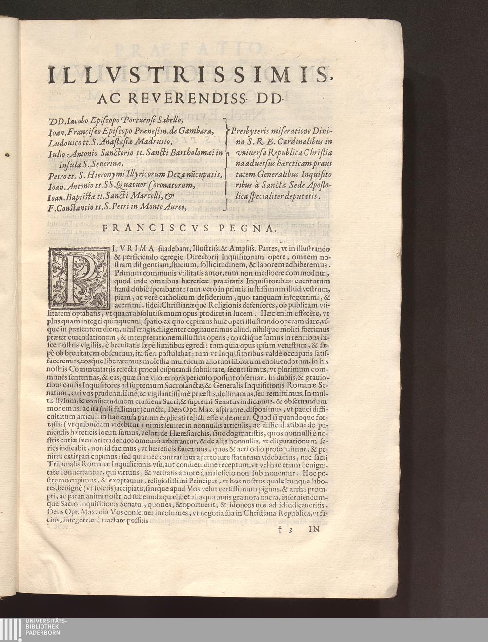 Directorivm Inqvisitorvm F. Nicolai Eymerici Ordinis Prædicatorum : Cvm Commentariis Francisci Pegñe Sacr[a]e Theologiæ ac Iuris Vtriusque Doctoris ; Accessit Haeresvm, Rervm Et Verborvm multiplex, & copiosissimus Index