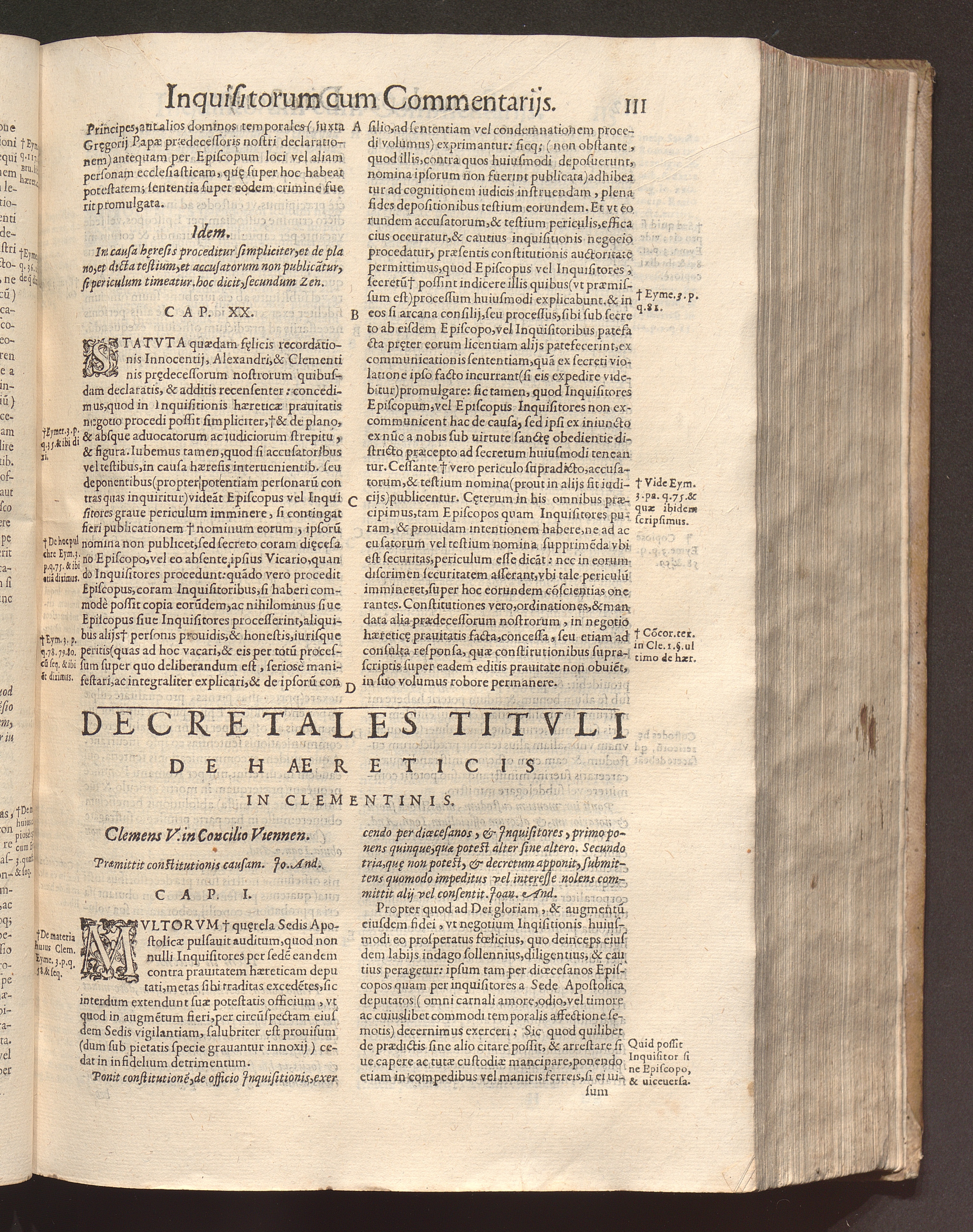 Directorivm Inqvisitorvm F. Nicolai Eymerici Ordinis Prædicatorum : Cvm Commentariis Francisci Pegñe Sacr[a]e Theologiæ ac Iuris Vtriusque Doctoris ; Accessit Haeresvm, Rervm Et Verborvm multiplex, & copiosissimus Index