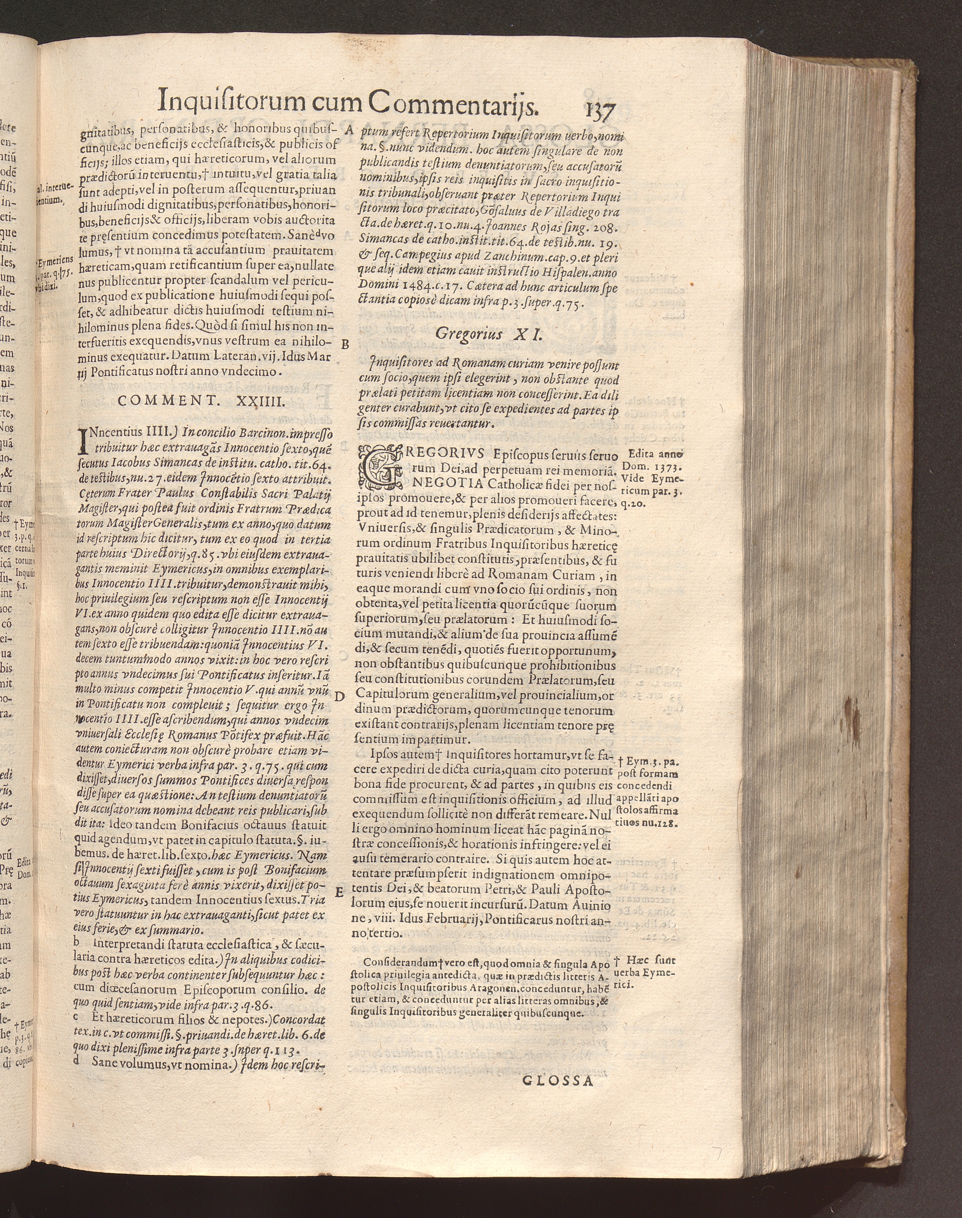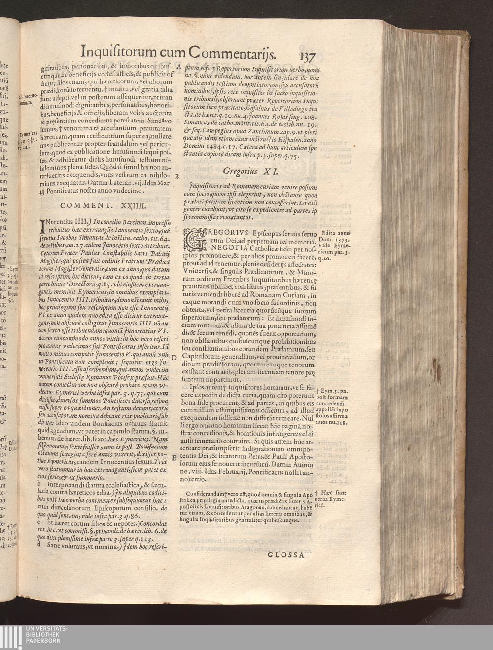 Directorivm Inqvisitorvm F. Nicolai Eymerici Ordinis Prædicatorum : Cvm Commentariis Francisci Pegñe Sacr[a]e Theologiæ ac Iuris Vtriusque Doctoris ; Accessit Haeresvm, Rervm Et Verborvm multiplex, & copiosissimus Index