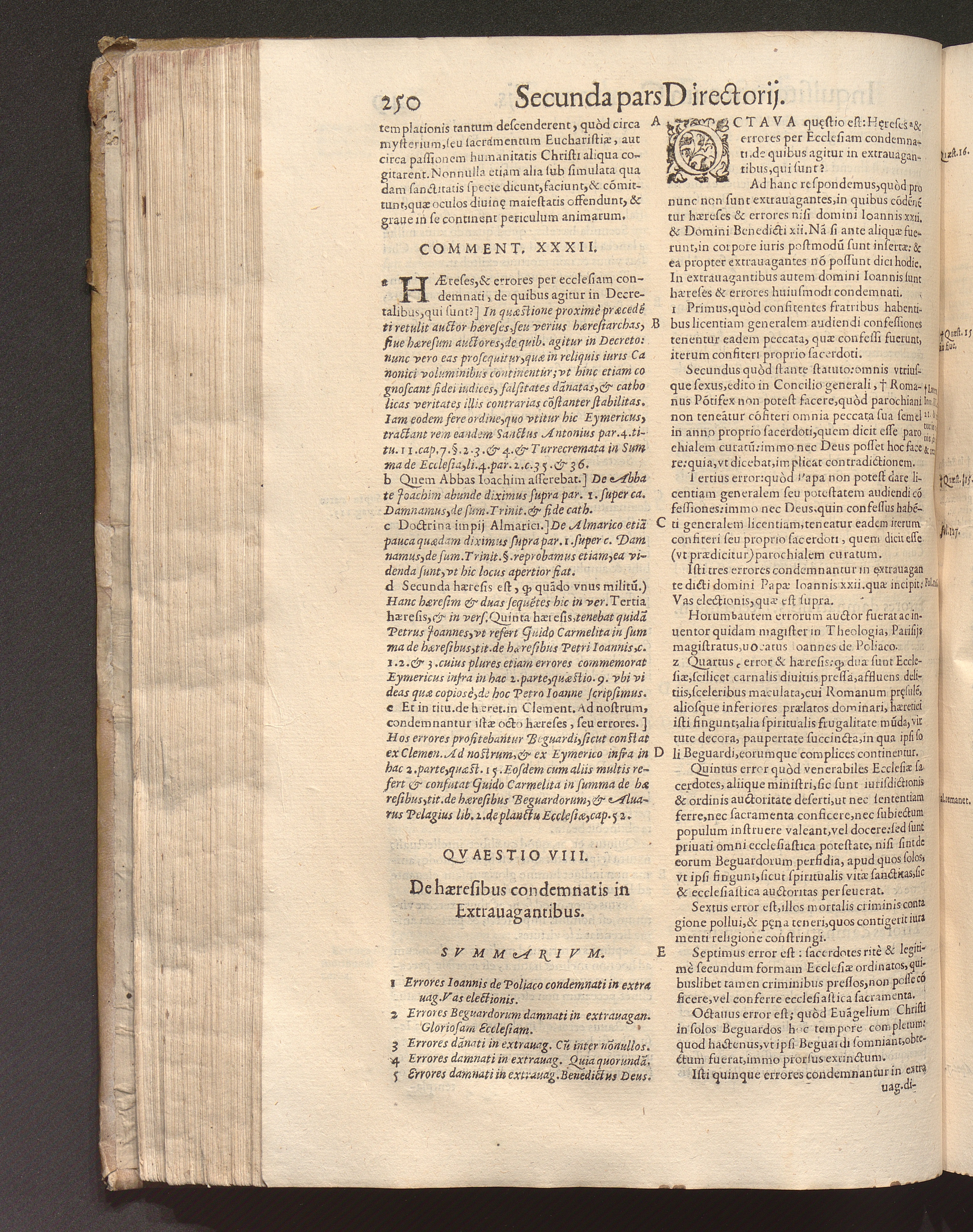 Directorivm Inqvisitorvm F. Nicolai Eymerici Ordinis Prædicatorum : Cvm Commentariis Francisci Pegñe Sacr[a]e Theologiæ ac Iuris Vtriusque Doctoris ; Accessit Haeresvm, Rervm Et Verborvm multiplex, & copiosissimus Index