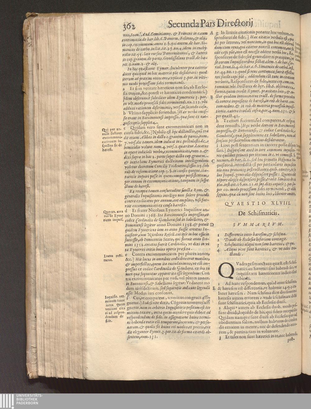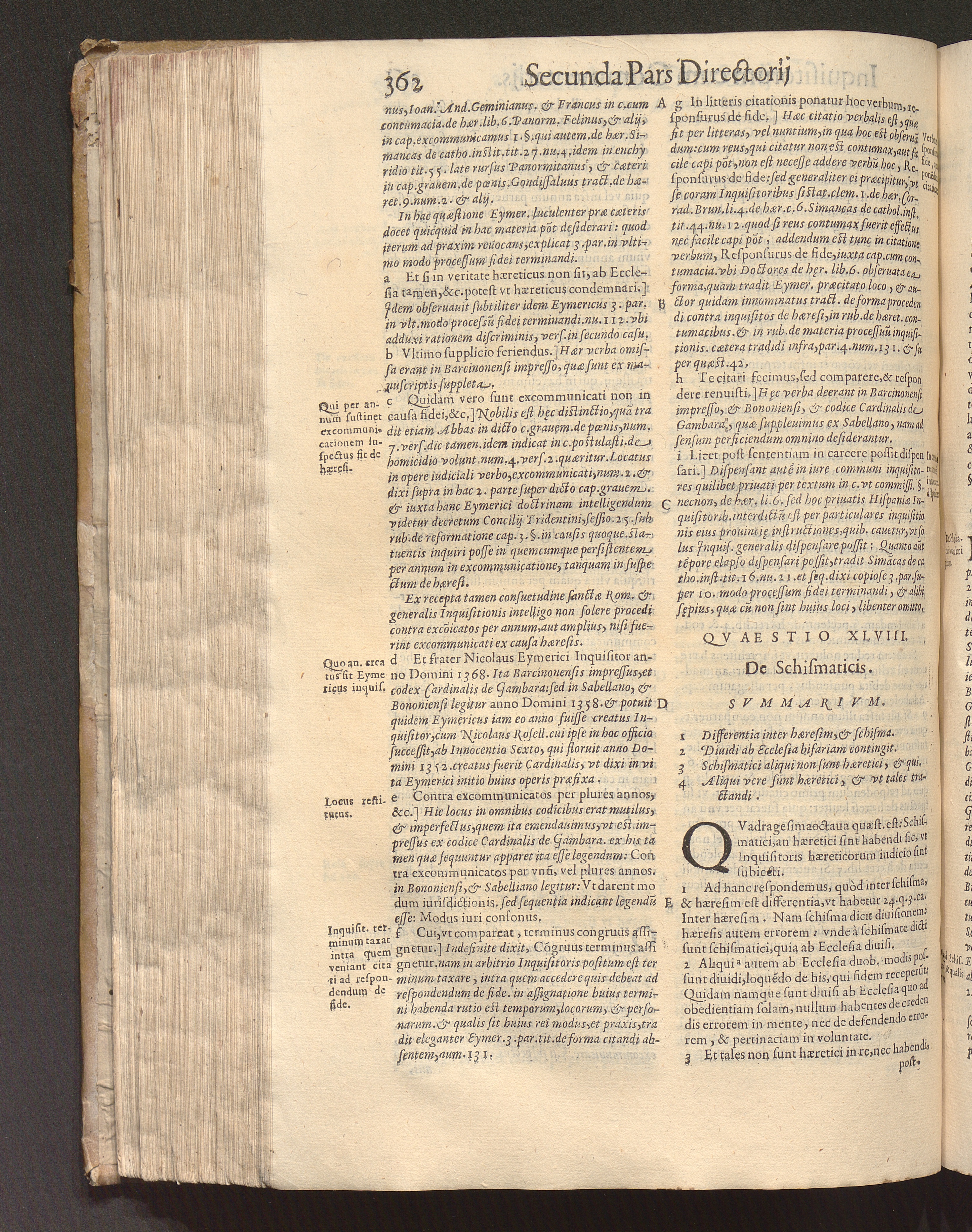 Directorivm Inqvisitorvm F. Nicolai Eymerici Ordinis Prædicatorum : Cvm Commentariis Francisci Pegñe Sacr[a]e Theologiæ ac Iuris Vtriusque Doctoris ; Accessit Haeresvm, Rervm Et Verborvm multiplex, & copiosissimus Index