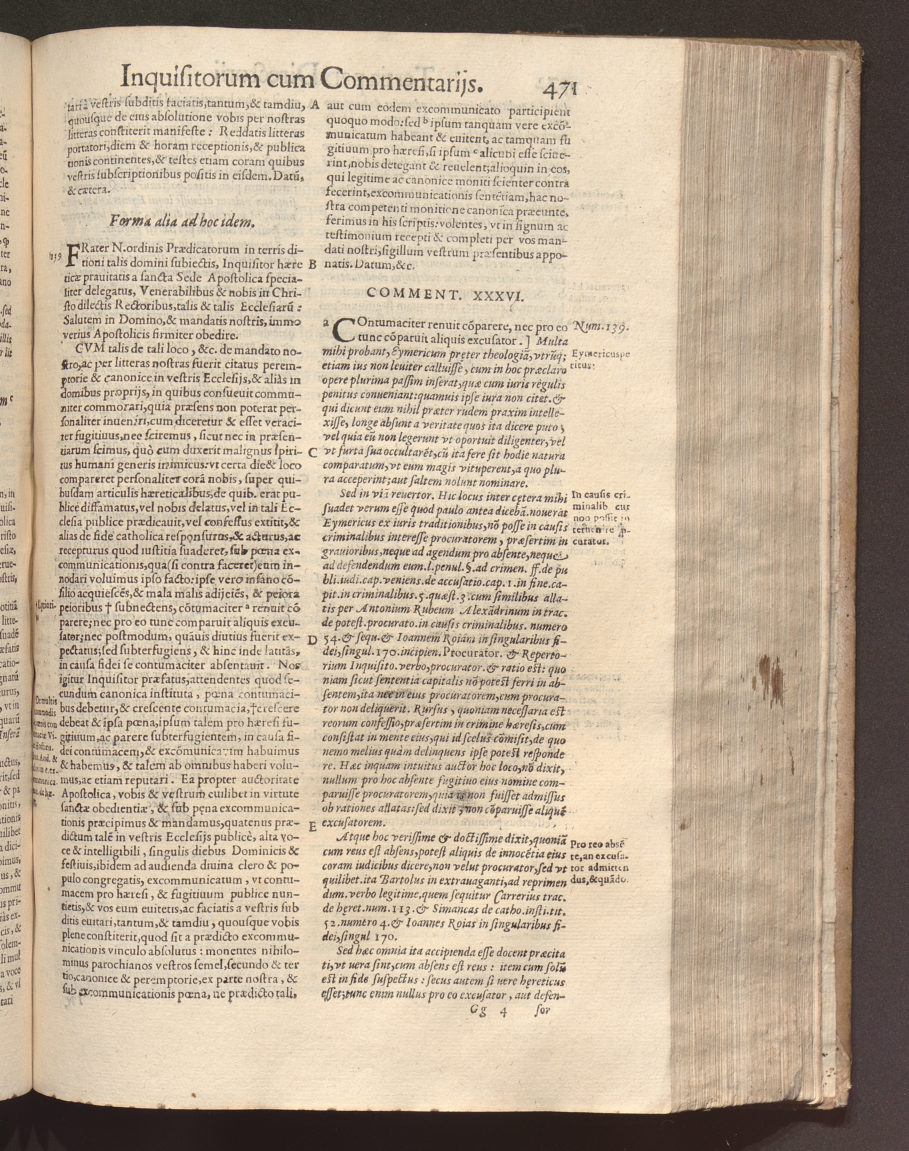 Directorivm Inqvisitorvm F. Nicolai Eymerici Ordinis Prædicatorum : Cvm Commentariis Francisci Pegñe Sacr[a]e Theologiæ ac Iuris Vtriusque Doctoris ; Accessit Haeresvm, Rervm Et Verborvm multiplex, & copiosissimus Index