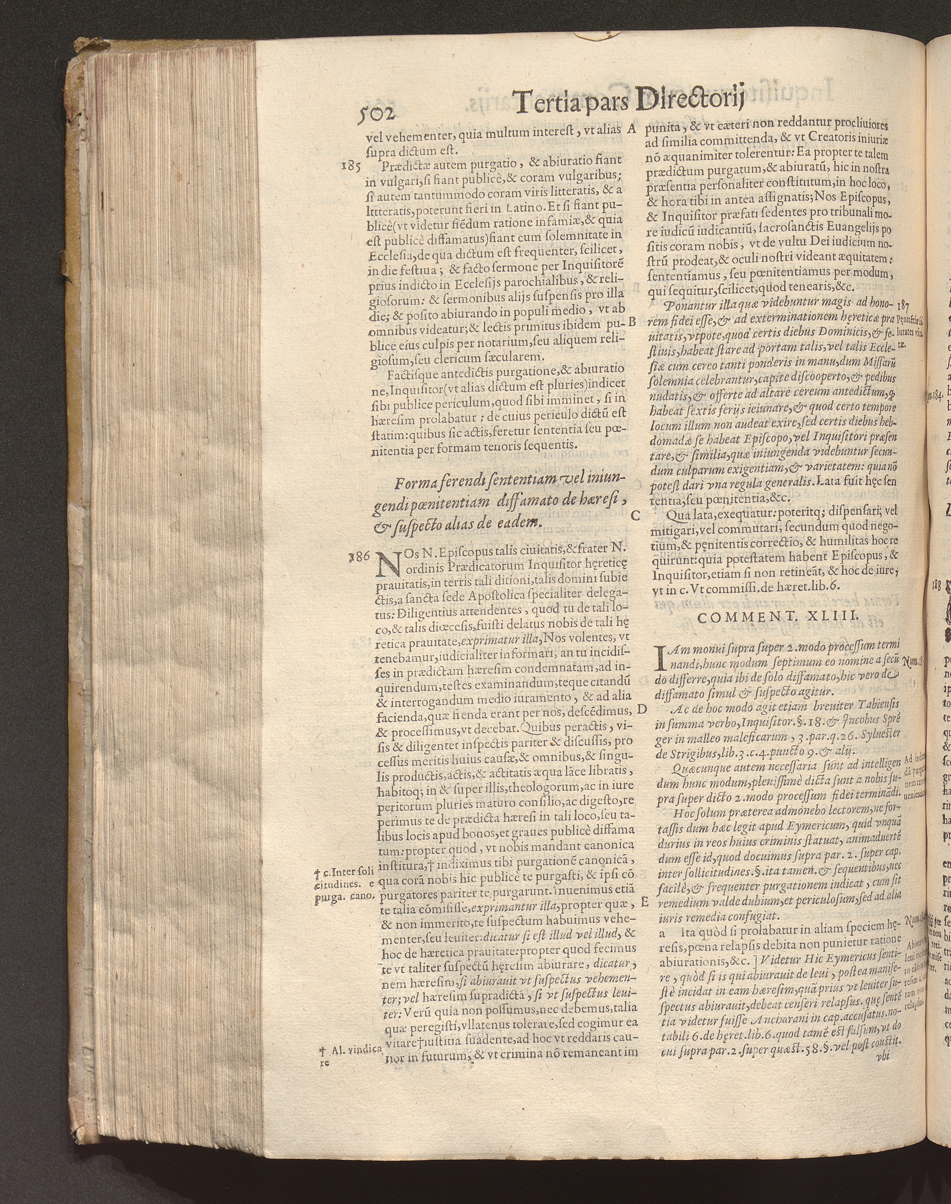 Directorivm Inqvisitorvm F. Nicolai Eymerici Ordinis Prædicatorum : Cvm Commentariis Francisci Pegñe Sacr[a]e Theologiæ ac Iuris Vtriusque Doctoris ; Accessit Haeresvm, Rervm Et Verborvm multiplex, & copiosissimus Index